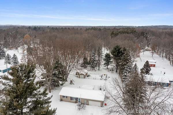 Welcome Home to 225 11 Mile Rd NW in beautiful Sparta!! Enjoy country living at its finest! Solid ranch nestled on just under 2 acres. Nice private deep lot which extends way into the pines (see GIS). Plenty of room for play, pets, entertaining and a huge garden!!! Main floor with good size living room, 2 bedrooms, full bath, kitchen with dining area, slider to 16x16 4 seasons sun room currently set up as billiard room. Lower level offers space for family room, egress window for 3rd bedroom, full bath is there just not framed in. Laundry room, storage and future exercise room. Enjoy the good size attached 2 stall garage & nice shed! Great location. Minutes to downtown Sparta, Trini's and close to Alpine and 131. If offers are received seller will review 2/9 10 pm. Home is ready for your personal touches and is being sold as-is. Note: Per seller, stains on living room ceiling photos are not due to water staining from roof. What appears to be staining is due to an antenna being duct taped to the ceiling. Also please see Ariel photo with lot lines to get better depiction of lot size. Very deep lot into the woods.