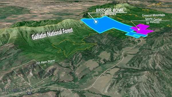 Bridger Canyon Road to Alpen Strasse Street, gated entrance on the right