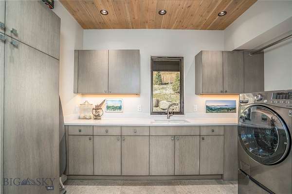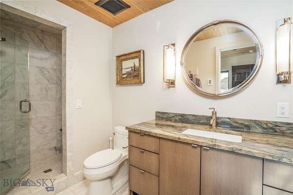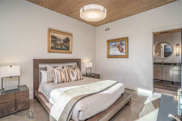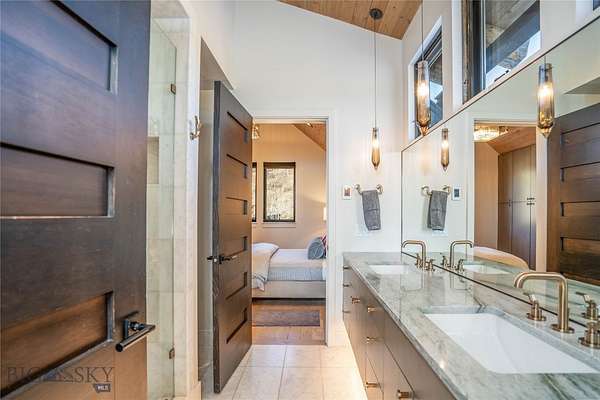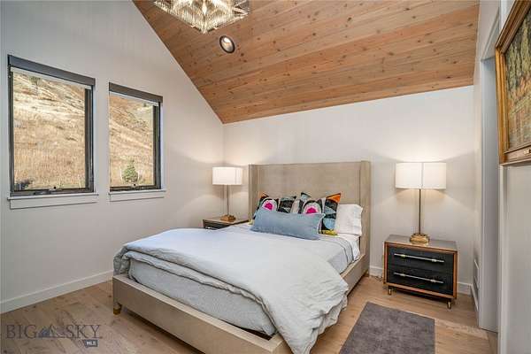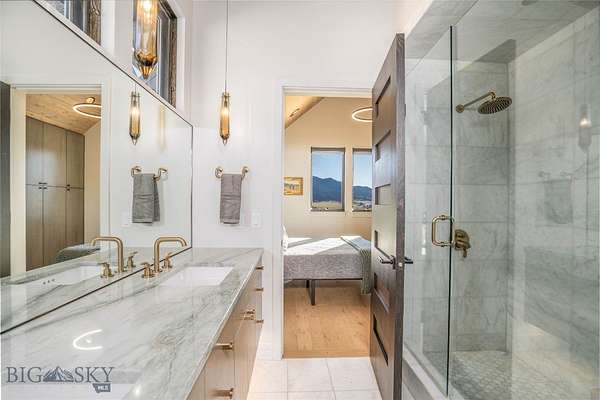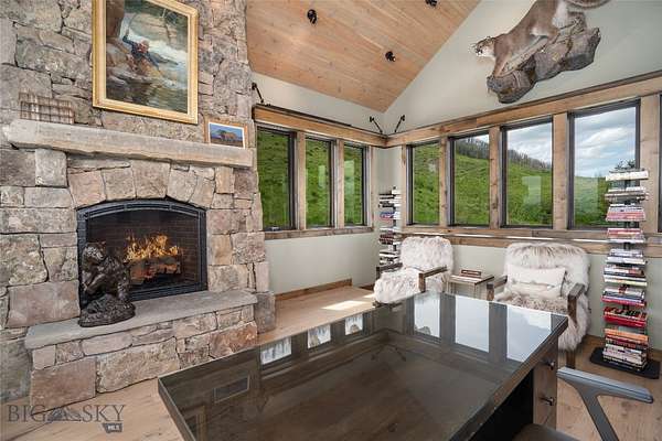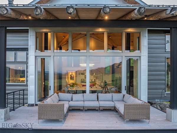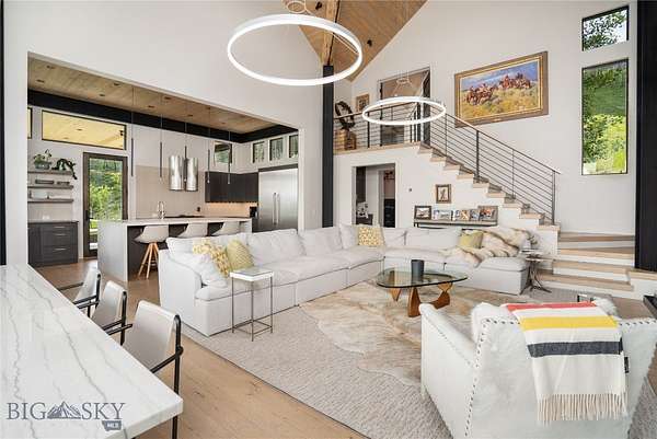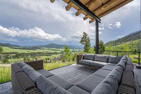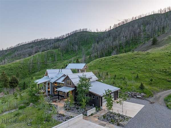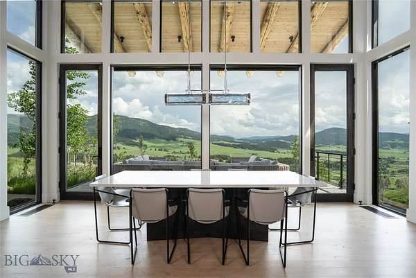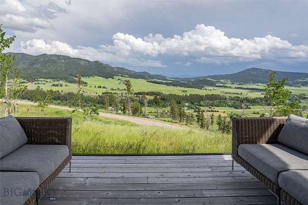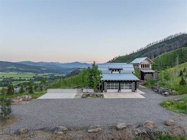 A rare offering in Bridger Canyon, Alpen Haus is a breathtaking 225-acre estate on three parcels that captures the essence of Montana's beauty, privacy, and refined living. Thoughtfully designed by Faure Halvorsen Architects and built by Battle Ridge Construction in 2017, this 5,396 sq. ft. residence offers timeless architectural integrity, modern comforts, and a seamless blend of form and function. The home features 4 bedrooms, 3.5 bathrooms, and a versatile floor plan spread across three levels. Vaulted ceilings and expansive windows in the great room frame dramatic views of the Bridger Mountains, while a wood-burning fireplace with gas assist adds warmth and ambiance. The open-concept layout connects the great room to the dining area and chef's kitchen-outfitted with premium appliances, custom cabinetry, and sleek stone surfaces-making it ideal for entertaining or everyday living. Outside, the home is surrounded by newly designed landscaping, tranquil water features, and two elevated decks that invite you to enjoy sweeping vistas in every season. A two-track road leads to the National Forest boundary, offering direct access to hiking, horseback riding, and backcountry exploration. Whether you're hosting guests or seeking solitude, the outdoor experience is immersive, peaceful, and uniquely Montana. Additional highlights include a stylish Airstream guest house-perfect for friends or extended stays-along with a large secure vault room, offering both charm and practicality. Set across three parcels, this estate delivers an extraordinary sense of privacy and possibility. The land itself is a tapestry of meadows, trees, and mountain views, creating a near-private park feel that is both wild and refined. Just minutes from downtown Bozeman yet a world apart, Alpen Haus is a sanctuary where nature, design, and luxury converge.