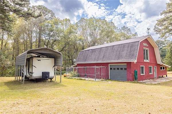 Usable 8.3 acres designed for true outdoor living! Ride 4-wheelers or dirt bikes, enjoy horseback riding, farm, or create your own private walking or running trails. This peaceful mid-century modern ranch sits on level lot and features an open-concept home plus a versatile 1,800 sq. ft. barn/workshop. Inside, the home offers slate flooring, expansive windows that flood the space with natural light, and a double-sided fireplace. The granite kitchen comes fully equipped with appliances and opens seamlessly to multiple flex spaces ideal for a home office, gym, or additional living areas. The spacious owner's suite includes a private patio overlooking the serene property. Outdoor amenities are exceptional, including fenced pastures, four horse stalls, hay storage, a dog run, a water well and covered RV parking perfect for equestrian use, hobby farming, or recreational enthusiasts. Located near Trillith, Hartsfield-Jackson International Airport, shopping, dining, and Fayette County schools, this property offers privacy without sacrificing convenience. Bonus features include a whole-home generator, a $10,000 security system, and a zero-turn mower, all included and gifted by the seller. Owner is open to seller financing or $10,000 in closing costs, creating a rare and flexible opportunity to own acreage with modern comfort and versatility.