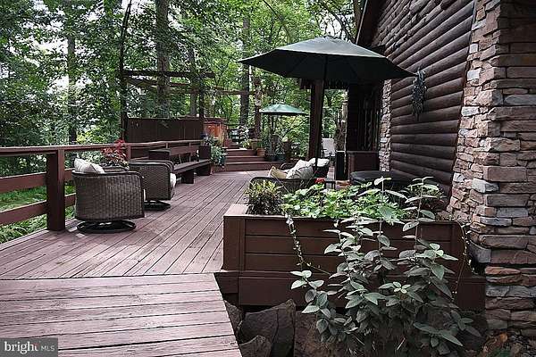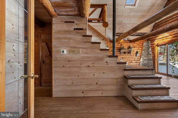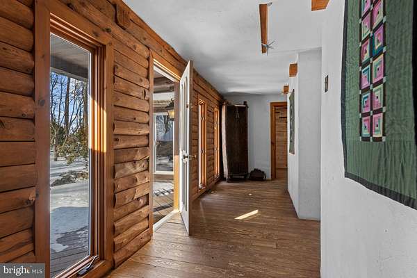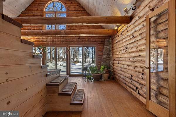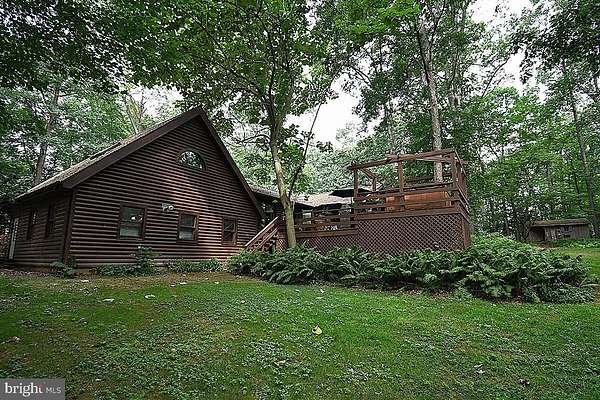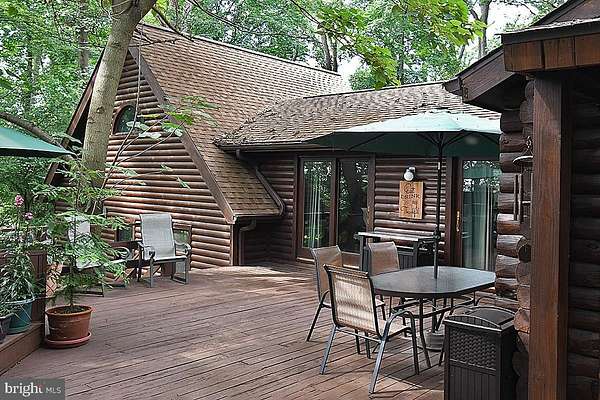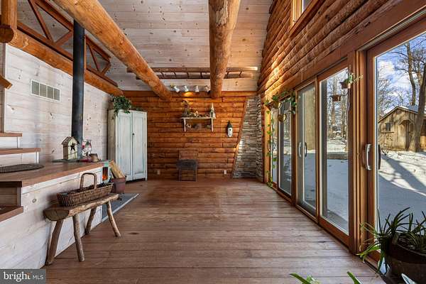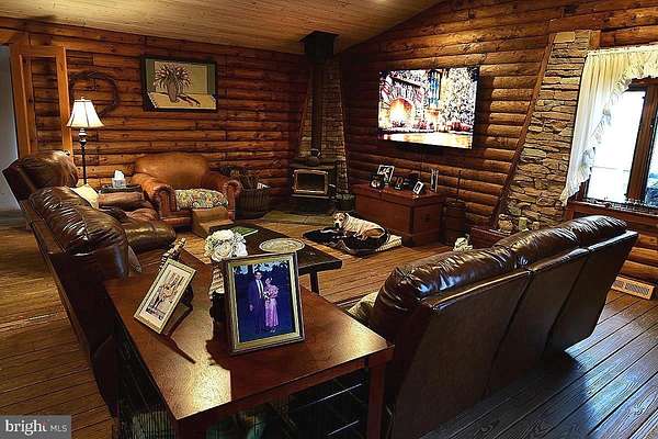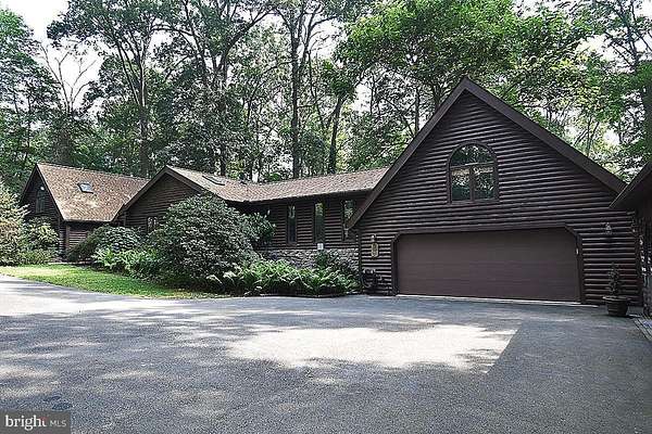 Welcome to this stunning custom log home situated on over 2 pristine acres with panoramic views at every turn. This exquisite 5 Bedroom, 4.5 Bath home features over 4,000 square feet of finished living space and must be seen to be appreciated. Numerous additions from the original structure have been thoughtfully added over the years. The east wing has soaring vaulted and beamed ceilings with a Great Room and a cozy wood stove with sliders to the expansive rear deck. Upstairs a loft bedroom has it's own Full Bath. 2 additional generous-sized bedrooms share a custom Center Hall bath on the main level. Finished lower level has 2 additional guest bedrooms, a Full Bath and 2nd Family Room with plenty of storage. Main floor Family Room features another wood stove and is open to the Kitchen with custom brick floor! Expansive Dining Room/Great Room with vaulted ceilings and wine fridges provides access to the Game Room with full bar, and sliders to the rear deck with hot tub and views of the private rear yard. Attached 2-car garage accesses the Office/In-Law Suite with Kitchenette and Full Bath. Detached 4-car garage provides tons of space for the car enthusiast or for whatever suits! Numerous patio spaces and areas to relax, entertain and take in this pristine property... So much to offer in this amazing magazine-quality setting!