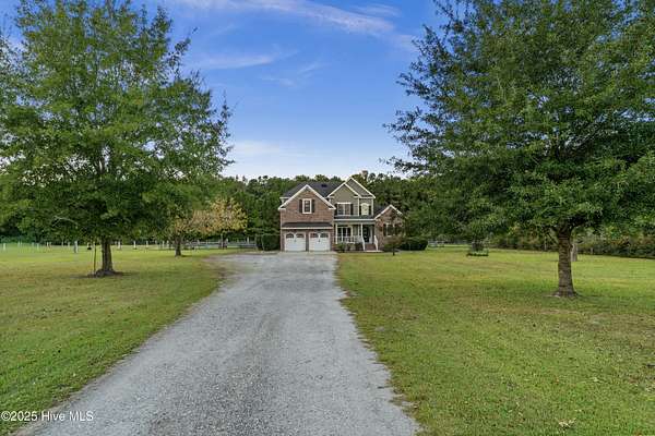 Discover 225 Bridal Creek Drive, a tranquil retreat in Burgaw, NC, set on over 2 acres of lush landscape. This charming single-family home features three bedrooms and two and half bathrooms, showcasing country manor elegance with new Brazilian hardwood floors in the bedrooms. The spacious living area boasts vaulted ceilings and built-in shelves, leading to an island kitchen with a gas stove and cozy breakfast nook, perfect for enjoying scenic views. The primary suite offers a spacious walk-in closet, while the outdoor space is ideal for relaxation and equestrian pursuits. Additional conveniences include a fully tiled laundry room and a private well for clean water, Garage is fully insulated and includes a hot and cold water hookup. Just 25 minutes from Downtown Burgaw and 45 minutes from Wilmington's beaches, this property perfectly balances rural tranquility with modern luxury. Experience the unique charm of 225 Bridal Creek Drive, your private sanctuary awaits.