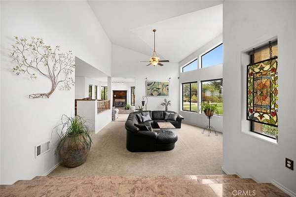 Enter a dramatic sunken family room where a floor-to-ceiling stone wall with inset windows and fireplace creates the ultimate hangout zone. Need more space? There's a bright and elegant formal dining room that opens to a view-drenched patio, plus a second lounge area with another cozy fireplace.