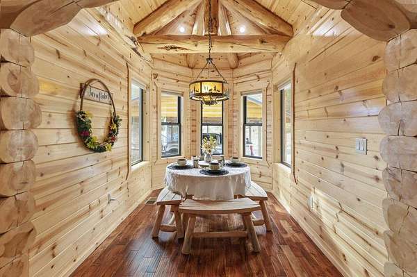 One-of a-kind Custom Cedar Log Home in the most desirable part of Canyonville, Oregon with stunning mountain and valley views. vaulted great room showcases soaring windows and a beautiful fireplace. Gourmet gas kitchen with natural edge granite, stainless appliances, and new cabinetry. Main-level primary and guest rooms offer easy living, while the spacious loft/game room with the spiral staircase adds endless possibilities. Brand-new paved driveway, cedar 3-car carport, and 32' x 48' fully insulated shop with 220 power and office provide exceptional function. Peaceful setting with city services and minimal upkeep. Just minutes from Seven Feathers Casino Resort, world class fishing, hunting, hiking, and golf. This home offers the best of Southern Oregon Living-luxury, and modern comfort in one property. Room to easily add bedrooms off of deck or loft.