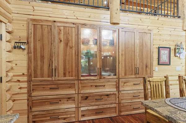 - Breakfast Bar, Built-In Features, Ceiling Fan(s), Double Vanity, Enclosed Toilet(s), Fiberglass Stall Shower, Granite Counters, High Speed Internet, Kitchen Island, Linen Closet, Open Floorplan, Pantry, Primary Downstairs, Smart Thermostat, Soaking Tub, Solid Surface Counters, Stone Counters, Vaulted Ceiling(s), Walk-In Closet(s)