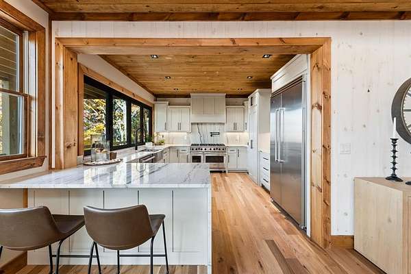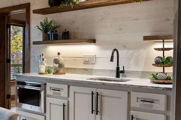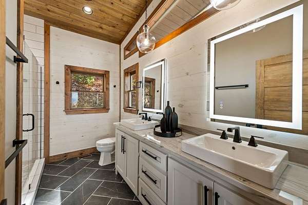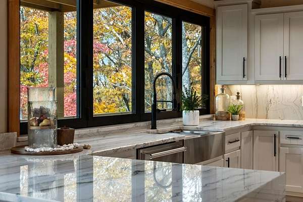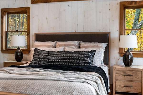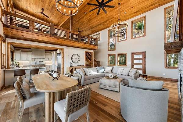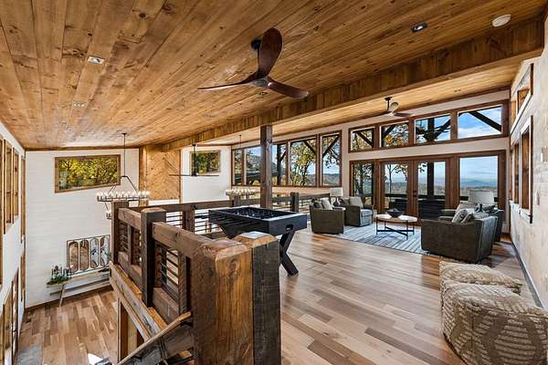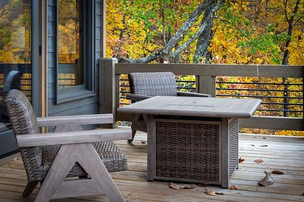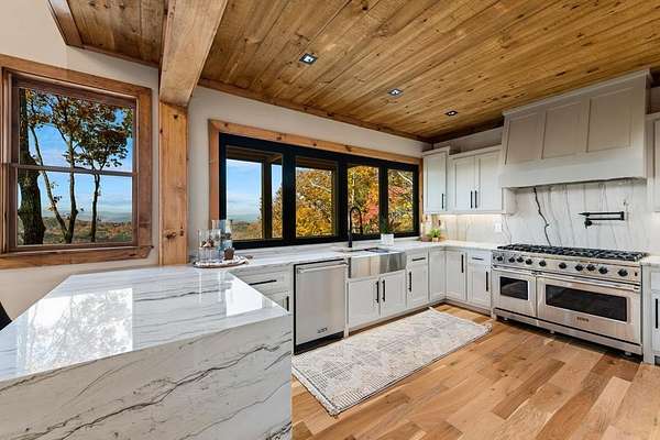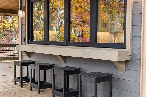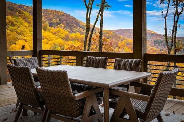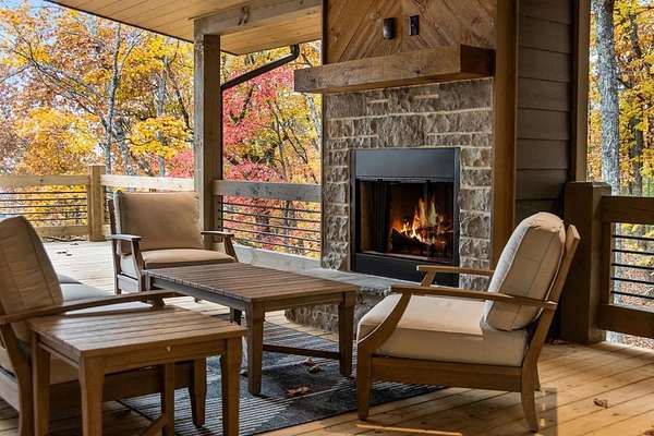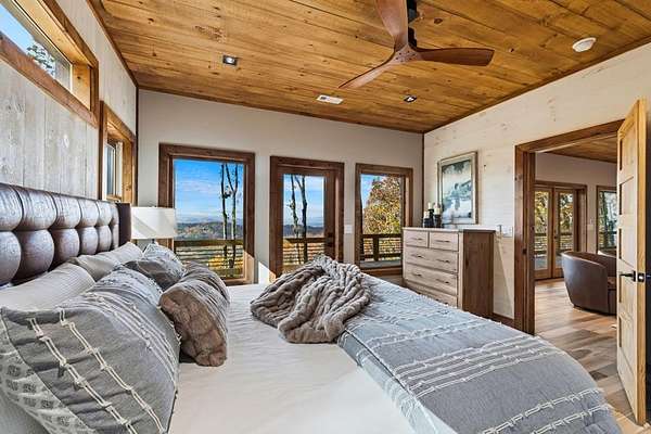 Tucked away in the coveted Aska Adventure Area, this brand-new mountain modern lodge captures the essence of refined mountain living. Just 10 minutes from downtown Blue Ridge with all paved access, it combines striking architecture, upscale craftsmanship, and sweeping long-range views that define the Blue Ridge lifestyle. From the moment you step inside, the mountains command your attention. The great room features soaring ceilings, walls of glass, and a dramatic stone fireplace that anchors the open floor plan. Every finish has been carefully selected--natural wood tones, clean lines, and designer lighting create a warm, modern yet timeless atmosphere that feels both elevated and inviting. The chef's kitchen is as functional as it is stylish, showcasing granite countertops, high-end stainless-steel appliances, and an accordion-style window that opens to the mountain air. The adjacent dining area flows seamlessly, making it ideal for gatherings that celebrate both good food and great views. The primary suite on the main level offers a serene retreat with a spa-inspired bath featuring a tiled walk-in shower, soaking tub, and private deck access where an outdoor fireplace glows beneath the stars. On the terrace level, you'll find a spacious entertainment room centered around another stone fireplace, along with three additional bedrooms and two full baths--each thoughtfully designed to offer comfort and privacy. Expansive outdoor spaces capture the beauty of the surroundings, featuring fireplaces on every level, generous decks, and inviting areas to gather or unwind. The finished garage enhances the home's versatility--perfect for additional storage, creative use, or future expansion. Whether enjoyed as a full-time home, weekend retreat, or investment opportunity, this newly built lodge delivers a rare blend of luxury design, thoughtful functionality, and awe-inspiring mountain views--an exceptional expression of modern mountain living.