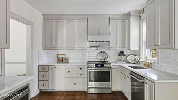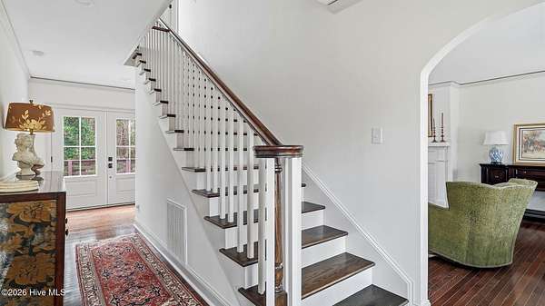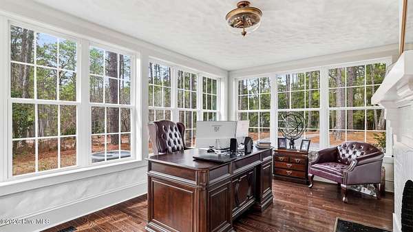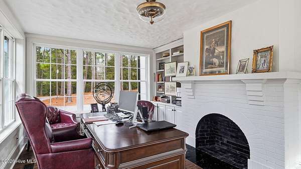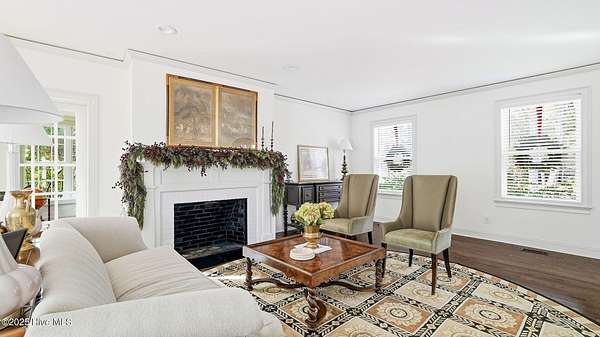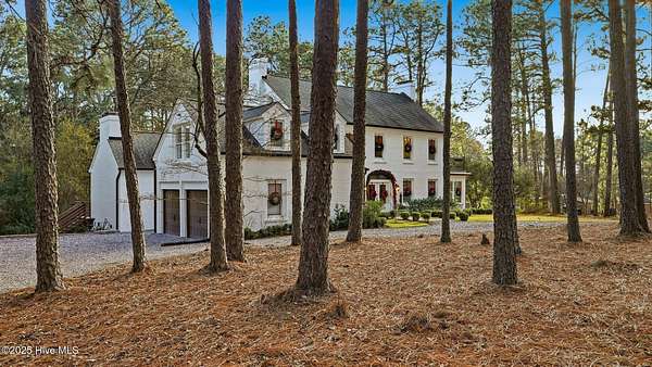 Set on 2 private acres just 1 mile from downtown Southern Pines, this beautifully remodeled 1935 brick home offers timeless character, generous space, and a setting that feels quietly set apart. A very large circular drive, mature trees, and a tucked away approach create a gracious sense of arrival and privacy that is increasingly hard to find this close to town. Inside, 3,213 square feet of living space blends classic design with thoughtful updates. Hardwood floors run throughout the home, grounding each room in warmth and continuity. The kitchen is a true highlight, featuring beautiful cabinetry that extends to the ceiling in a soft, neutral tone that feels refined and refreshingly not white. A tiled backsplash, brass faucet, and inviting eat in area create a space that is both functional and welcoming. The home offers multiple living areas, including a family room with a vaulted ceiling that adds volume and architectural interest. 4 wood burning fireplaces are thoughtfully placed throughout the home, bringing warmth, charm, and a sense of tradition that is increasingly rare. A light filled sunroom currently used as an office provides flexible space with peaceful views of the property, ideal for work, reading, or quiet reflection. The primary suite is a retreat of its own, with access to a second story balcony overlooking the grounds. The primary bath features a dual sink vanity, soaking tub, and a tiled shower designed for relaxation. With 4 bedrooms, the home offers flexibility for guests, family, or additional living needs. Outdoors, a deck spanning the entire length of the rear of the home creates an ideal setting for entertaining, dining, or simply enjoying the surrounding landscape. Located minutes from downtown Southern Pines and offering convenient access to Ft Bragg, this home delivers space, privacy, and enduring charm in one of the area's most desirable areas. Classic, welcoming, and thoughtfully updated, schedule your tour today!