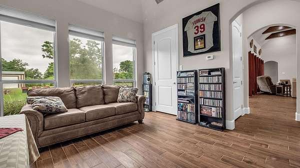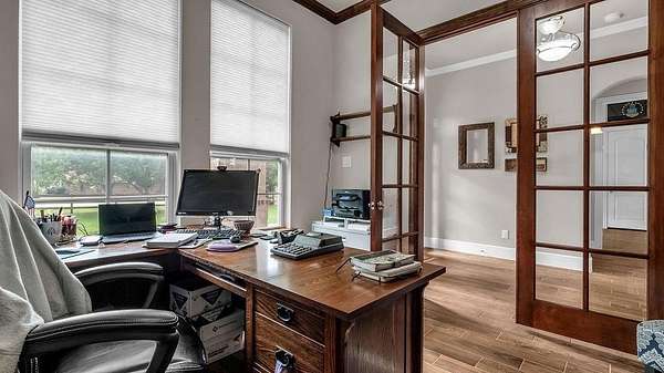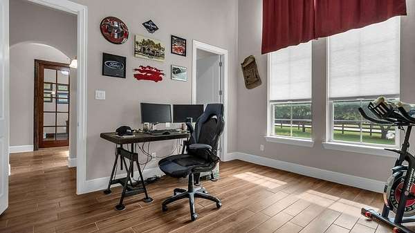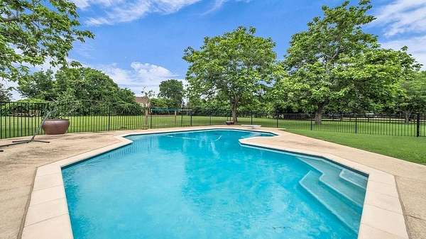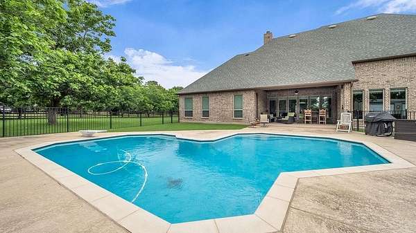 Beautiful Custom Home on 2 acres in Lovejoy ISD. Open Floor Plan, 4 Bedrooms with Ensuite Baths. Study with French Doors and Built In Cabinets. Spacious Kitchen with Large Island, Granite Countertops, Storage in Island on both sides, Seating at Island and Electric Cook Top. Spacious Dining Area. Master Bedroom with Sitting Area, Dual Vanities, Large Walk In Shower, Large Master Closet with Access to Laundry Room. Family Room with views of Patio and Pool. 4th Bedroom currently being used as a secondary living space, game room or play room. Large Covered Patio, Pool and Pool Fencing. Three Car Garage. Unfinished bonus space upstairs. The space is framed and plumbing rough in place for adding a bathroom. Metal Building Workshop with 2 Roll Up Doors. So Much To See!!