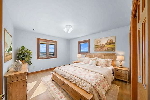 Supporting infrastructure includes an oversized two-car attached garage, a two-car detached garage, a one-car detached garage, and a dedicated two-car shop with an expansive workshop--perfect for storing and maintaining equipment, vehicles, and tools. Two large hay barns offer ample space for feed and storage.
