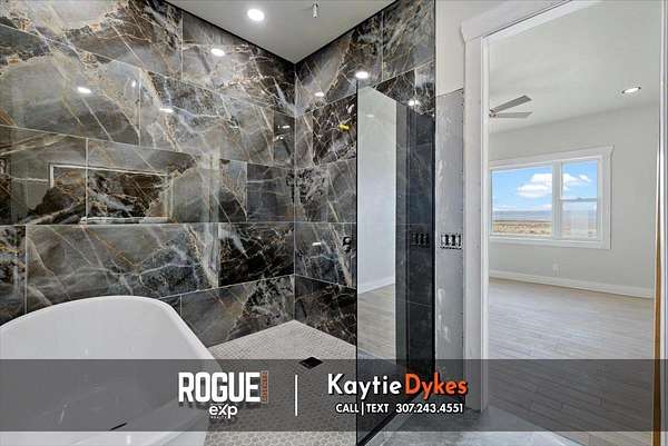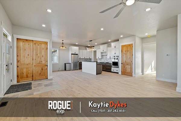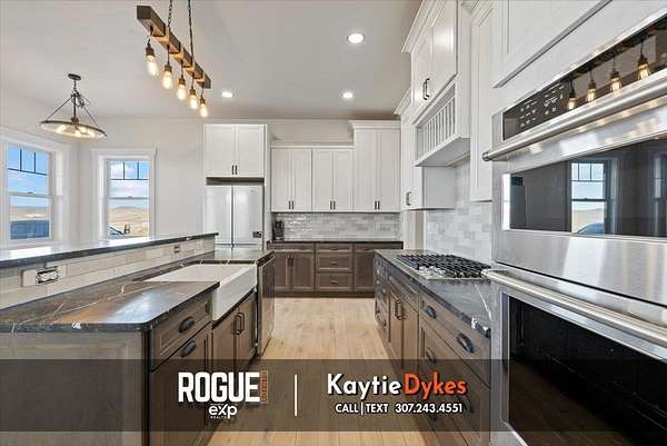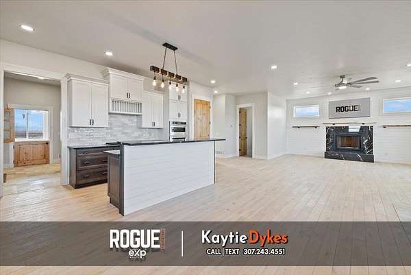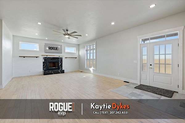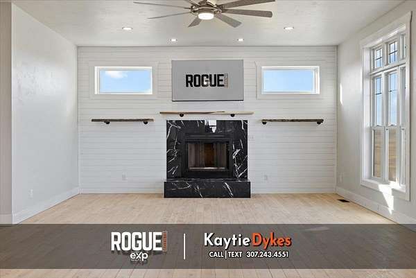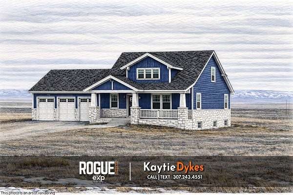Rural meets luxury on just over 20 acres with incredible mountain views and room to live the lifestyle you want--livestock, outdoor hobbies, and wide-open space right out your back door! This 3 bed, 2.5 bath new construction home features 10' ceilings on the main, hardwood floors throughout, upgraded kitchen appliances, and a cozy wood-burning fireplace. Relax in the spacious primary suite with a spa-like bath and full wet room, plus walk-in closets in every bedroom, a bonus room upstairs, and an oversized 3-car garage. A rare blend of acreage, upgrades, and modern comfort--Contact Rogue Agents with eXp Realty today to line up your own private showing by calling/texting 307.243.4551 Exterior photos are an artist redition and actual features may vary