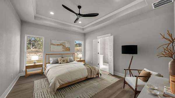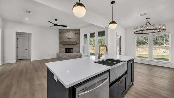 Step inside this stunning brand-new home nestled on 2 acres in the peaceful Barnett Ridge community. Built in 2024, this modern single-story combines clean design with everyday comfort, offering 4 bedrooms, 2 baths, and an open floor plan made for effortless living. The kitchen stands out with a large island, stainless appliances, and generous cabinetry, flowing seamlessly into a warm living area anchored by a cozy fireplace. The primary suite features a soaking tub, separate shower, and spacious walk-in closet. Enjoy sweeping country views, a side-entry garage, and the freedom of no HOA--all within Peaster ISD.