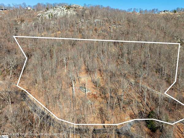 Tucked away behind a private drive, this nearly 11-acre Glassy Mountain homesite offers a unique sense of seclusion and tranquility. As the driveway winds upward, the property unfolds into a serene mountain setting where mature hardwoods, striking natural boulders, and expansive acreage create a peaceful buffer from the outside world. A level homesite sits privately at the heart of the property, thoughtfully positioned to capture sweeping long-range mountain and valley views while remaining surrounded by nature. Enjoy the rare opportunity to create your own private hiking trails winding through stunning natural boulder formations. At approximately 2,200 feet in elevation, enjoy cooler summer temperatures, gentle mountain breezes, and the vibrant seasonal color that defines fall in the Upstate. A Club membership at The Cliffs is available for purchase with this property giving you access to all seven communities.
