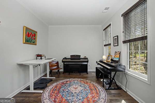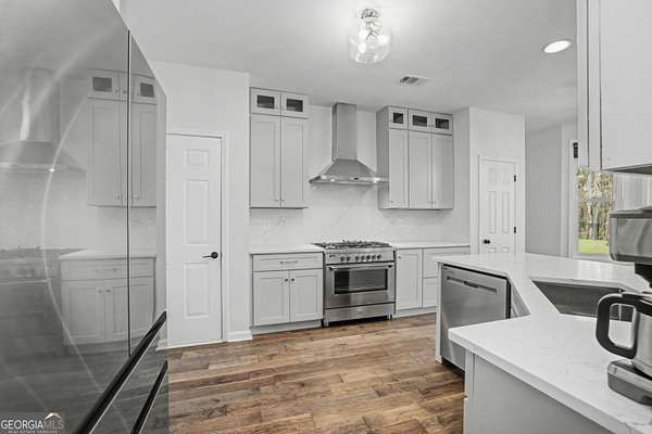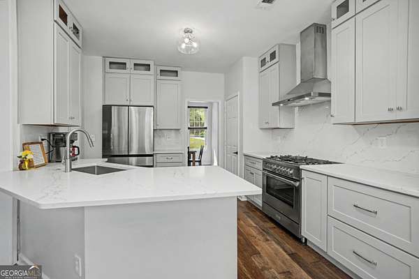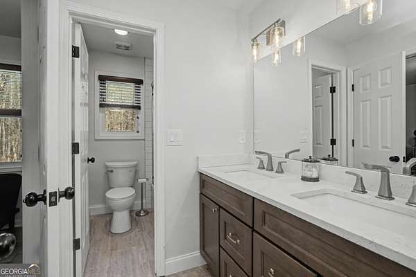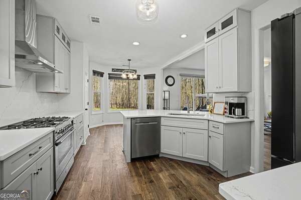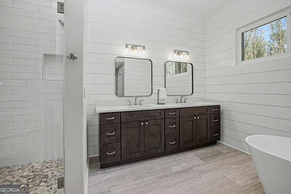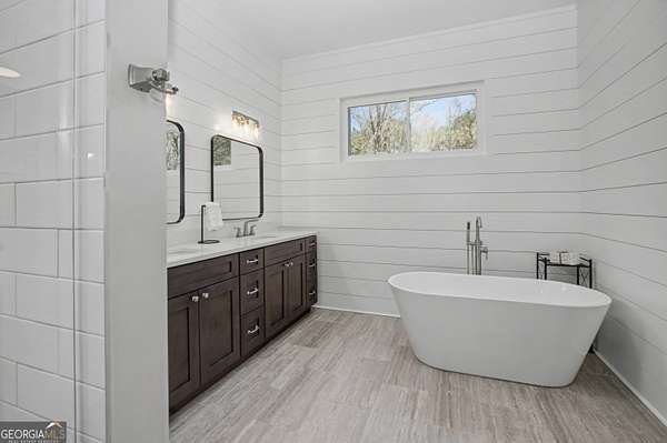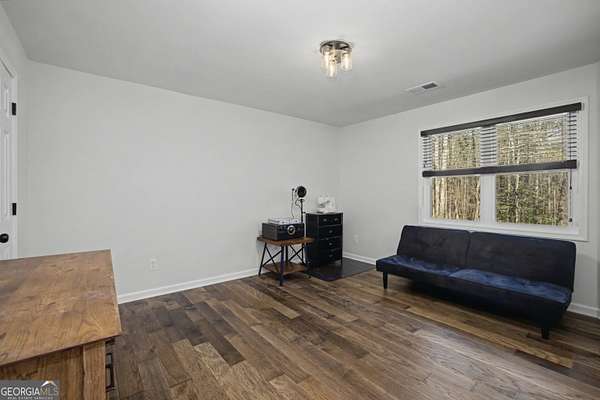 Nestled on 3.5 private acres in a quiet cul-de-sac, this fully renovated 4-bedroom, 2.5-bath home offers a rare blend of privacy, modern updates, and convenience. Located in the highly sought-after Starr's Mill High School district just 1.2 miles from the school, the home is truly move-in ready. Inside you'll find engineered hardwood flooring throughout the main living areas, tiled floors in the bathrooms and upstairs laundry room, and a beautifully updated interior. The renovated kitchen features modern cabinetry and finishes, creating an ideal space for cooking and entertaining. A convenient back staircase provides additional access to the upper level. All bathrooms have been fully remodeled with stylish tile-wall showers, including a spa-like primary suite with a freestanding tub, elegant shiplap accents, and a relaxing retreat feel. A spacious bonus room offers flexibility for a home office, media room, or playroom, while a dramatic window wall fills the main living room with natural light and scenic views of the surrounding property. Major system upgrades include two HVAC units (2023 & 2025), new windows (2023), new hot water heater (2023), and a new driveway (2024). Outside, enjoy a large fenced backyard with a brand-new aluminum fence (2025), perfect for pets, play, or relaxing in your own private setting. The property also sits next to a golf cart trail, adding convenience and a unique lifestyle feature. Owners have the option to opt-in for Woodcreek amenities.