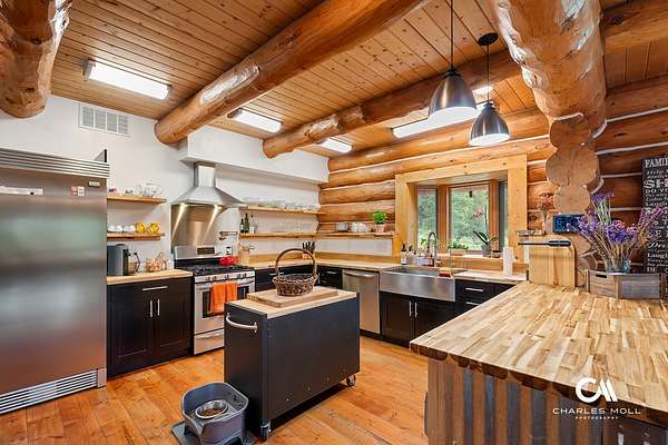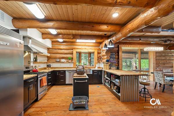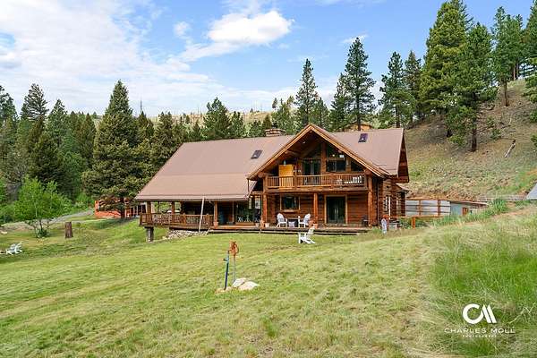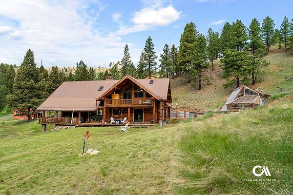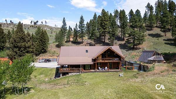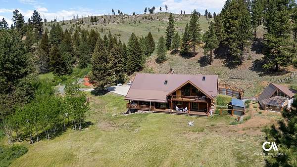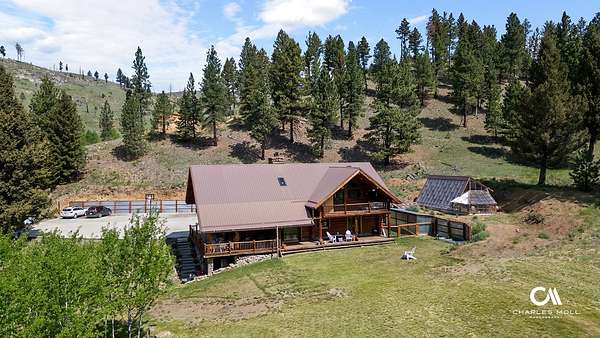 Montana Dream Property in the Elkhorns - Where Comfort Meets the Outdoors... Escape to nearly 5,000 sq ft of hand-hewn log craftsmanship, tucked into the breathtaking Elkhorn Mountains on 20 acres of pristine land. This private sanctuary borders thousands of acres of the Beaverhead-Deerlodge National Forest and lies within the highly coveted 380 Hunting District-renowned for its trophy bull elk-making it the ideal base for outdoor lovers, hunters, and those seeking unmatched privacy. At the heart of the property is Muskrat Creek, a year-round, spring-fed stream teeming with native Westslope Cutthroat and Brook Trout. A tranquil sitting area by the creek offers the perfect spot to relax, reflect, or entertain while surrounded by frequent visits from elk, moose, mule deer, and whitetail deer. An additional year-round spring produces an impressive 10-12 gpm, further feeding the creek and supporting the land's lush ecosystem. The main home combines rustic glamour with authenticity, featuring newly chinked logs, custom Montana finishes, and panoramic views from every window. At its heart, a striking granite fireplace stretches from the basement up through the main floor, housing a cozy native stone wood stove. Vaulted ceilings add an airy elegance to the spacious media/living room and beyond. Downstairs, discover a fully equipped private apartment with extra sound insulation, its own wood stove, 1+ bedrooms, 1 bath, full kitchen, laundry, and separate entrance-ideal for multi-generational living. Outside, a geothermal greenhouse (nearly complete) promises year-round growing, while a 30' x 90' pad is already in place for a future garage, all surrounded by carefully landscaped grounds. A spacious storage shed and chicken coop complete the homestead lifestyle. Overlooking the main house is a charming 2-bedroom, 2-bath guest house with a loft, soaring vaulted ceilings, pine tongue-and-groove finishes, and its own separate well and septic system. Though nearly finished, it is fully move-in ready and presents excellent private housing for friends and family. You'll enjoy complete seclusion-you can't see another neighbor from the house-yet still have easy access to modern amenities. The home is located 6 miles northeast of Boulder, the last property on a county-maintained road, and accessible year-round, with reliable cell and internet service. Two private wells, two septic systems, and a 12 zone underground sprinkler system add to this property's fantastic features. Situated just 45 minutes from both Helena and Butte, and centrally located between iconic Montana destinations like Yellowstone and Glacier National Parks, this property offers unmatched convenience for adventure seekers. Whether you're dreaming of a serene homestead, a recreational base, or a trophy hunting retreat, this Montana gem delivers it all-wrapped in nature, peace, and possibility.