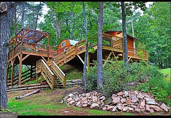 Enjoy all the N. GA mountains have to offer, minutes to Lake Burton, downtown Clarkesville, GA wineries, surrounded by U.S. National Forest, tranquility awaits at the perfect little city escape or hunting/fishing cabin. Set on almost 3.4 acres, this newly converted tiny home shares a rustic vibe with all the modern amenities and comforts including a brand-new wrap-around deck with covered front porch entry, rare, luxurious full bath with step-less shower + subway tile, full-sized stainless farm sink, tankless water heater, custom closets + cabinetry, two sleeping lofts, kitchenette with fridge, and electric cooktop, fenced dog run with lockable doggy door, 4 years old well + water lines, all underground utilities with fiber optic internet (HEMC) or Windstream, new septic rated for a full 3br/3ba house, carport for RV, boat, or car parking. Big things come in small packages- you've got plenty of space to entertain- either the back deck or the firepit area. Incredibly private and surrounded by thousands of acres of National Forest filled with wild game and a 20-minute walk to the Soquee River is stocked with trout. Great for a weekend retreat, short-term rental, the sky is the limit. The property is currently active Airbnb.