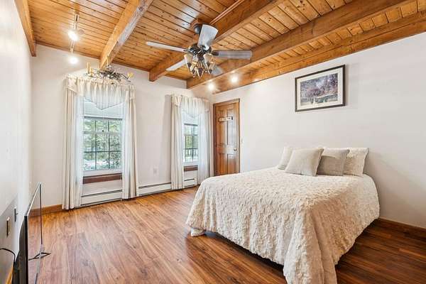 You will love the charm and tranquility of this beautiful Cape-style home with a 2-car garage on a generous 2.77 acre lot with nearby shared access to Pine River. Inviting open concept kitchen and dining room wonderful for entertaining. Sliders off the dining room open onto a deck overlooking the private backyard. The home's interior is enriched with abundant natural wood accents, creating a warm and welcoming ambiance throughout. The expansive living room offers ample space for gatherings and relaxation. A comfortable bedroom, full bathroom and laundry room complete the first level. The second level has a wonderful primary suite complete with an attached spa-like bathroom perfect for relaxing, a spacious third bedroom, an office for remote work or creative pursuits and a super-sized family room perfect for movie nights featuring a cozy propane fireplace. A charming covered porch overlooks a grass front yard with mature landscaping providing excellent curb appeal. A small barn offers storage for your toys, lawn and snow equipment. Easy access to shopping, only 20 minutes to King Pine Ski Area for skiing, snowboarding, tubing, ice skating and cross-country trails. Enjoy kayaking and canoeing on Pine River. Only 10 minutes to Ossipee Lake. This property offers an idyllic blend of country living, well appointed amenities and natural beauty making it an exceptional find! Delayed showings begin at the Open House on Saturday 12/13 from 1-3 pm and Sunday 12/14 11-1 pm.