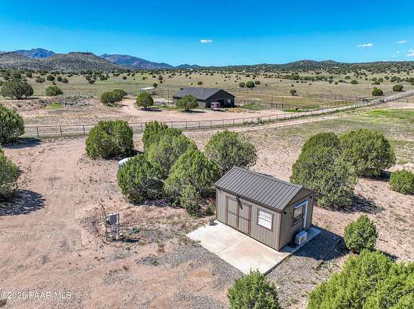 WOW 5 acres fully fenced with strong 28 Gallon per minute well & 1,500 Gal Septic tank and leach field already installed. Super views and Great Privacy, Also includes a 12X16 spray foam insulated and permitted Shed with Mini Split HVAC installed. Full power to lot, and multiple hose bibs installed. Also two full RV hook ups with power and water installed. Site built only homes 1,500 sq. ft. min. Lot backs to state trust land. this is a very rare find and an easy build site. Pull your plans and have power and water already. Owner is a licensed real estate agent in the state of Arizona