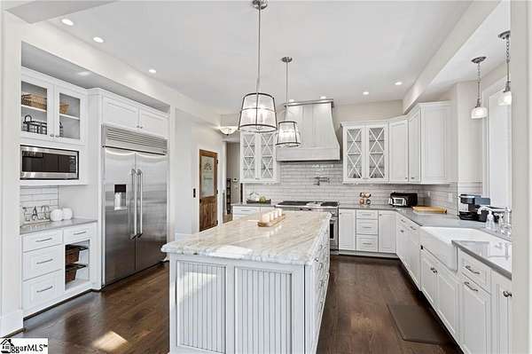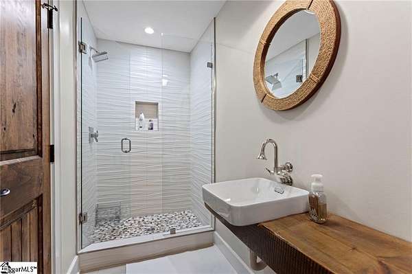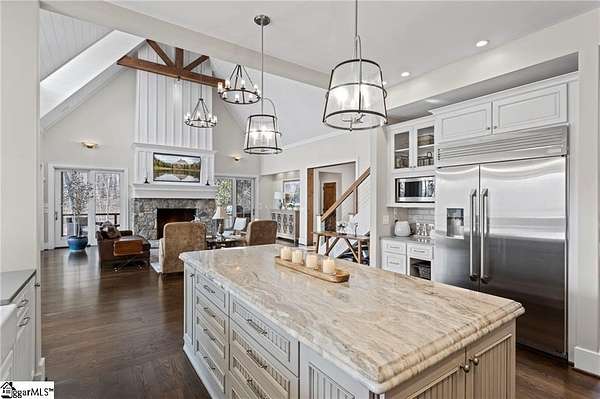 Nestled in the foothills of the SC/NC mountains, this property offers the owner tremendous peace and serenity. Located in the most elite community in the Upstate, The Reserve at Lake Keowee, this home is a short golf cart ride from the world-class 18 hole Jack Nicklaus Signature designed golf course and exquisite dining venues and community amenities. within its gates. It is a custom-built Craftsman style 4-bedroom, 5.5-bathroom 5300 sf home on 1.76 private, wooded acres on the shores of what many consider THE most beautiful lake setting in South Carolina, Lake Keowee. The grounds are a blend of unique, sustainable landscaping with year-round beauty including dogwoods, redbuds, hydrangeas and wooded privacy. The home itself is situated to avoid a steep driveway like many mountain homes have to make walking the dogs easy. Step inside to discover soaring ceilings and exposed beams in the Great Room, complemented by sliding glass doors that draw your eyes to the shimmering lake view. The open-concept kitchen, with a french country flair is outfitted with high-end appliances—including a dual-fuel range—two dishwashers and a gas cooktop. The spacious island and quartz and granite countertops are perfect for everything from an intimate breakfast to an elaborate buffet. The living room and grand fireplace invite relaxation, while the adjoining dining area with a lake view, opens up to an expansive deck and screened-in porch, ideal for both quiet moments overlooking the beauty of Lake Keowee and for entertaining. The main floor also features a luxurious Owner's Suite with fireplace, cathedral ceiling, private deck, and custom closets. The spa-like bathroom includes a stunning shower and a beautiful water view. Take the handcrafted stairs or the elevator that services all three floors to the loft office space and a private en-suite guest room, again all with lake views. The lower level is a complete entertaining area with a spacious living room, bar sink, wine cellar, sauna, exercise room, and an additional en-suite guest room, both with direct access to the deck which has a built-in hot tub overlooking the beauty of Lake Keowee. Additional features include plenty of storage space, a second pantry, and a second laundry area. Above the three car garage (with ceiling heights tall enough to fit hydraulic lift car stackers to make it a six car garage), the guest apartment is currently used as a fantastic sports bar/man cave and music studio. It has a full bathroom including a steam shower, a private office and can also be a home gym, home theatre, apartment, studio or spacious storage area. The bathrooms throughout the home were beautifully designed by Circles and Squares Studios, showcasing stunning tile layouts. The property features four distinct outdoor seating areas, including a peaceful meditation garden, a lakeside fire pit, a mid-path dining area, and a stone bench by the water. As a resident of the Reserve, you’ll have access to over $100 million in top-tier amenities, including the Jack Nicklaus Signature Golf Course, Practice facility, the Orchard Clubhouse with fine dining, a Fitness Center, hiking trails, Har-Tru clay tennis courts, lawn tennis, a pool and cabana, a village market, pickleball courts, and a marina. Owner may be willing to include some furniture. This is the home of all homes in The Reserve. Come see it soon. Reserve membership fee of $85,000 due at closing.