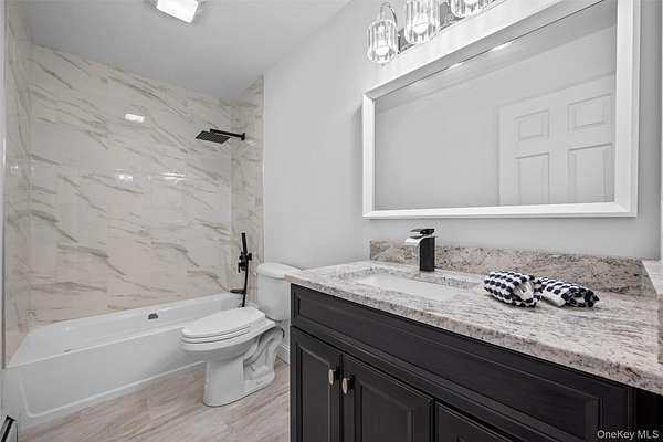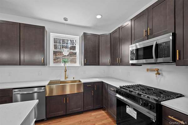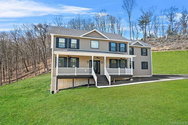 Welcome to a stunning brand new Colonial Home nestled in the heart of the town of Wallkill . The builder is offering up to 1% buy down on the interest rate for the first year with a full price offer (provided by a selected lender). This beautiful home has a grand front entrance boasts with a two-story foyer with iron stair balusters and a gorgeous combination of iron and wood. The main floor with its gleaming hardwood floors offers a spacious living room with built-in electric fireplace to a family room to a dining dining area open to a beautiful kitchen with a massive gorgeous island, beautiful quartz countertops, backsplash tiles, a farmhouse sink plus stainless steel appliances and elegant light fixtures. This main floor is perfect for entertaining with windows flood the home with natural light. The second floor offers hardwood floors in the hallways and in all the 4 bedrooms. A primary suite master bedroom with its huge walk-in & a built-in closet plus with a luxurious master bathroom. Additional a great size full bathroom and a spacious laundry room are on the 2nd floor. The basement is fully finished with a full bathroom holds a spacious living space with tiles floorings. It is perfect for any type of entertainment: a movie room, a home gym and a play room. Conveniently located less than 60 miles from NYC, minutes to shopping, Buses and Trains stations and major highways. Please note the pictures of yard are with artificial grass images.