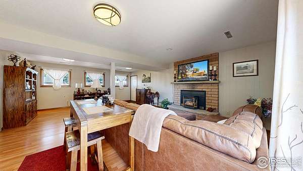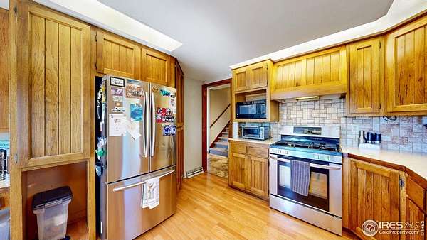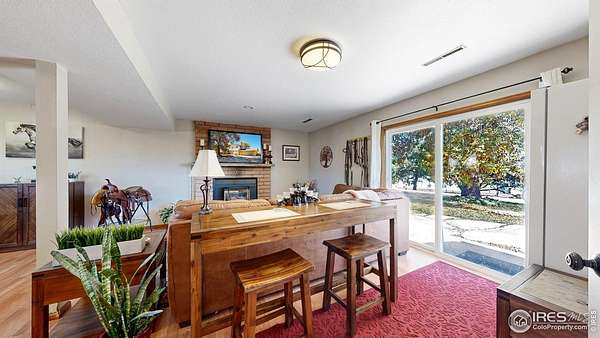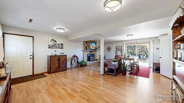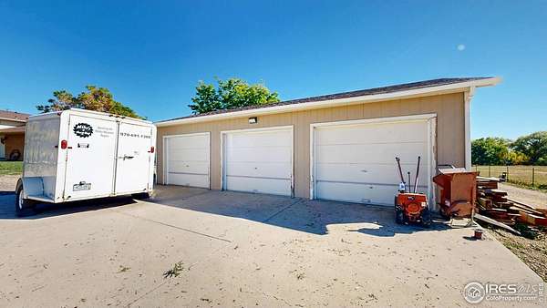 Rare find! Infill 2.33 acre horse property in south Fort Collins. Updated 3 bedroom, 2 bathroom home with multiple living areas with 5 car garage. Home has nice finishes including beadboard kitchen cabinets and wood wrapped range hood, tile backsplash, and stainless appliances including gas range. The upstairs features three bedrooms and a full bathroom. Multiple living areas include a living room off of the kitchen and a large open family room with fireplace and full bathroom on the lower level. Outdoor space includes covered patio, veggie garden, and mature pine trees.