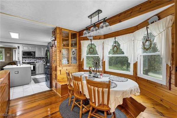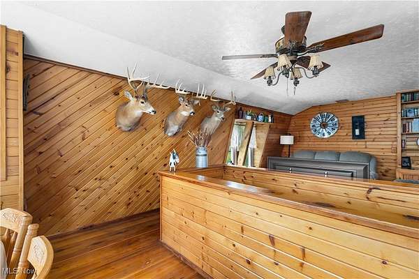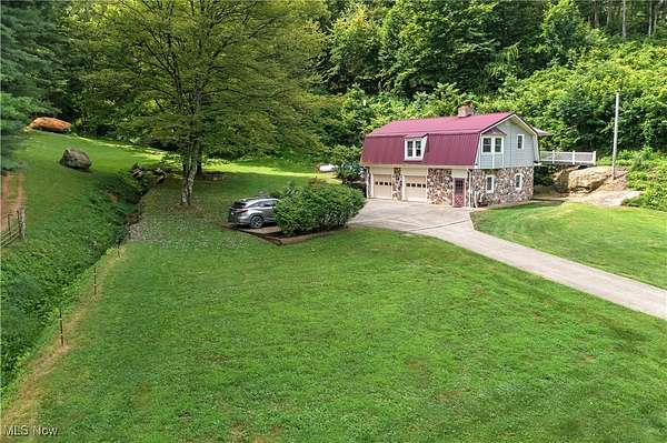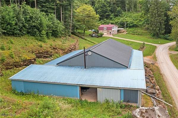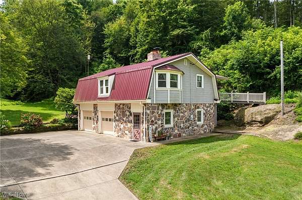 Located in the East Muskingum School District, this 28.75-acre property offers a rare blend of updated comfort, natural beauty, and functional space-just 15 minutes from Cambridge and about 30 from Zanesville. The home features 2 bedrooms, 2 fully renovated bathrooms, and a flexible bonus room on the main floor that could be a third bedroom, office, or gear room with its small garage door. An open layout is centered around a striking stone chimney and whole-house wood burner, paired with beautiful woodwork throughout for a warm, cabin-like feel. The high-end kitchen includes a farmhouse sink, solid surface countertops, stainless appliances, and a large island for prep and storage. Recent updates include a metal roof and high-efficiency vinyl windows. For your comfort there is the convenience of fuel oil forced-air heat, central air, and a propane heater for the above-ground pool. The land itself is a mix of roughly 18 acres of forest and 7 acres of pasture, with a small creek running through the backyard and massive boulders that add character to the spacious back yard-including one with a walkway leading from the deck to the top of humongous boulder that leads to a ridge next to the house. A concrete driveway, 2-car attached garage, and plenty of parking add practicality to the peaceful setting. The 40x60 barn (expanded to approx. 64x64) includes 3 added enclosures, concrete floors, a wood stove, and its own 200-amp electric service-perfect for equipment, workshop space, or animals. Mineral rights will transfer; shallow well income will remain with the seller. Selectively timbered about 40 years ago and great for hunting or simply enjoying the quiet. Schedule your private tour and see what this unique country property has to offer