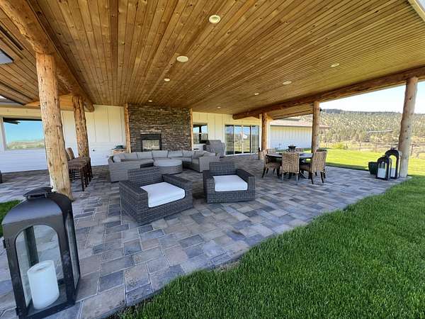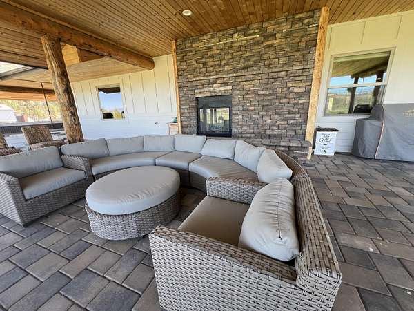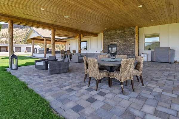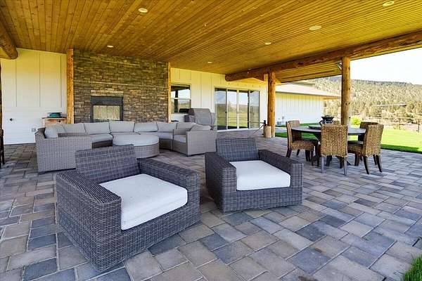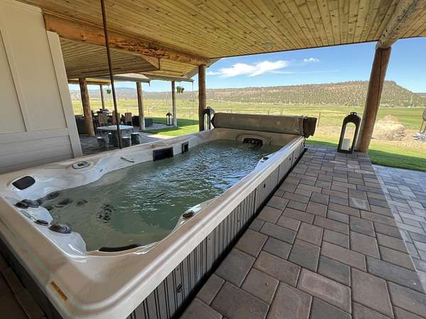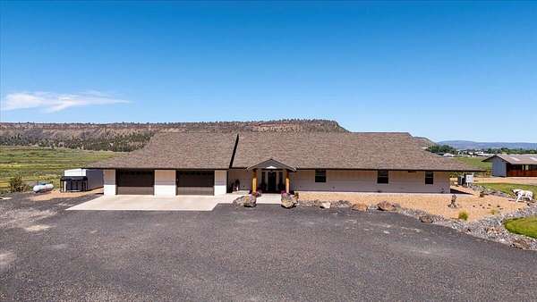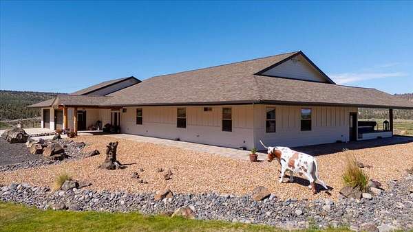This exceptional custom ranch blends modern elegance with rural charm, just minutes from Prineville. Enjoy breathtaking views of the Crooked River Valley from the beautifully designed single-level home, featuring hardwood floors, granite countertops, a copper farmhouse sink, and a chef's kitchen with a spacious island, stainless steel appliances, and the butlers pantry provides ample storage. The great room and expansive covered back patio with a fireplace, swim spa, and lush landscaping create an entertainer's dream. The private primary suite boasts a spa-like bath, a huge walk-in closet, and peaceful views. A generous den offers flexibility as an office or extra bedroom. Equestrian enthusiasts will love the six-stall barn with large runs, tack room, roping arena, and cattle turnouts. A 3-bay shop provides abundant storage and workspace, and guest quarter. Whether you're seeking a working ranch or a private retreat, this property offers the perfect blend of comfort and functionality.