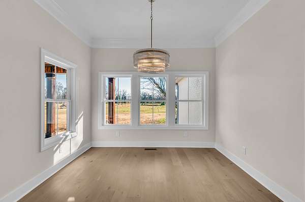 Brand-New custom home on nearly 4 acres. Welcome to this exceptional 3-bedroom, flex room, 2 full bath, 2 half bath custom home, thoughtfully crafted with beautiful finishes and timeless style. Being set on just under four acres, this property offers the perfect blend of privacy, comfort, and style. Step inside to an inviting open floor plan featuring upgraded trim work, designer lighting, and thoughtfully designed touches. A spacious living flows seamlessly into the kitchen, complete with quartz tops, soft close cabinetry, stainless appliances, a large island, and a spacious walk-in pantry. The primary suite features abundant natural light, two separate vanities, oversized soaker tub, tile shower, custom closet. Additional bedrooms are well- appointed and designed for flexibility - perfect for family, guests, or a home office setup. A large bonus room over the garage is filled with natural light - providing additional space for a media room, playroom, or hobby area. Outside, enjoy the charm of the homes covered porches, elegant exterior detailing and wide open flat acreage. Additional features include mudroom/drop zone, custom built-ins in the laundry, oversized two car garage, and hardwood floors throughout with exception to the bonus room. Builder offering up to $10,000 in closing assistance.