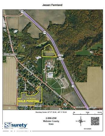 Located on hard-surface roadways, this is an excellent opportunity to secure prime farmland to raise crops, build your own custom getaway in the trees on a hilltop. For raising crops, the high CSR2 of 84+ provides an excellent opportunity for high yields just down the road from premium grain markets in the heart of Iowa's corn-growing region. Deep, dark, and fertile soil can raise some of the best crops in the area. With immediate access to Highway 169, but separated by a hill and surrounded by trees, the 7.5-acre parcel is an ideal hideaway for a custom home and a hobby farm. The farm lease is open for 2026 so it can start to grow crops and income for the new owner in the very next growing season. It would make an excellent addition for an existing farming operation, or it would be a smart investment for a buyer to add to a diversified portfolio. Taxable Acres 7.49+/-, Annual Real Estate Taxes $248; Corn Suitability Rating 2 (CSR2) on 4.5+/- Acres of Tilled Land 84.6; No Highly Erodible Land; No Conservation Reserve Program (CRP) Acres Exclusively listed property. Contact Brent Larson or Jon Flattery with Sunderman Farm Management Co. to submit offers.