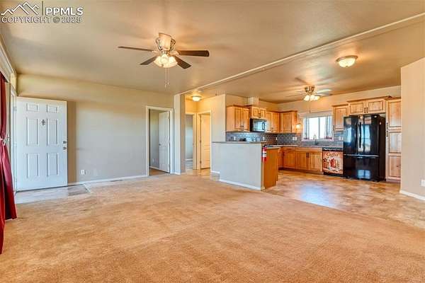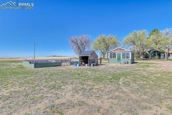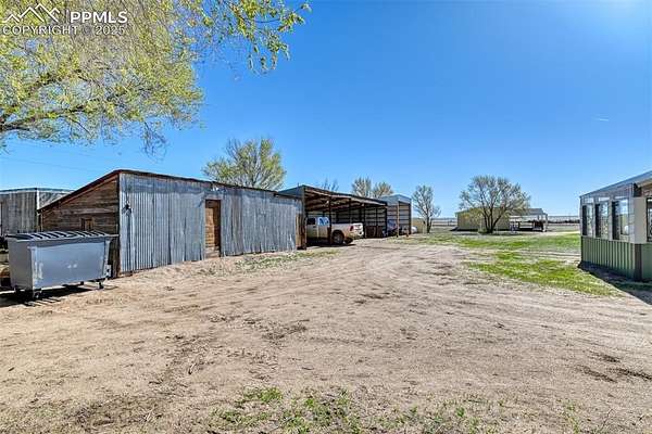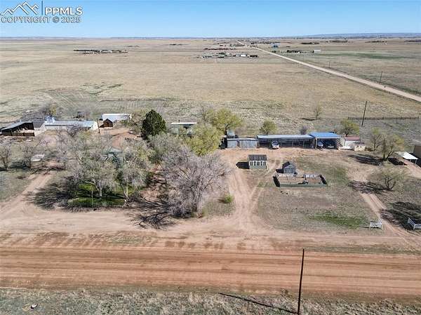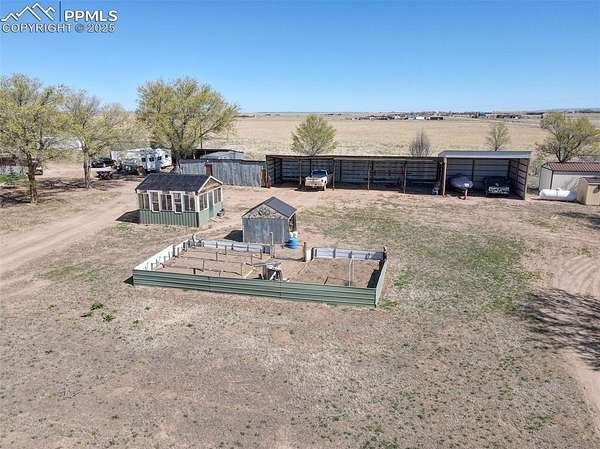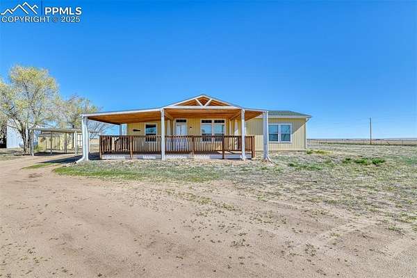 Welcome to this unique 40-acre "square" property, formerly a working dairy farm, now thoughtfully converted into versatile family living. With two separate homes, this property offers endless possibilities for multi-generational living, rental income, or guest accommodations. The main residence is a 3-bedroom 1-bath home with wood tone plank vinyl flooring, updated kitchen, main level office, must-see mudroom/laundry area, finished basement with family room, library nook, ample storage and tank-less water heater. Fenced in yard with grass, flowers and mature trees as well as covered patio with plenty of seating space. The secondary home, a 2016 manufactured home, has its own address, is a 3 bedroom, 2 bath with all appliances, large covered front porch as well as carport and 2 storage sheds close by. Both homes offer forced air propane heat, central air and ceiling fans. Need bonus space? You will love the detached "Rec Room"/Workshop, formally the dairy barn, with pellet stove, work benches, and plenty of space for your favorite activities and storage for it all. Extras include a 3-car garage, 8-stall pole barn, additional out buildings, 2 year old greenhouse with raised planting beds & water hydrant inside. An exterior garden is fenced off with water hydrant adjacent to a garden shed to keep your tools handy. Bring your horses, your boat, your RV-there's room for it all here. With wide-open space, Pikes Peak views, and just under 30 minutes to town, this property combines rural freedom with modern convenience.