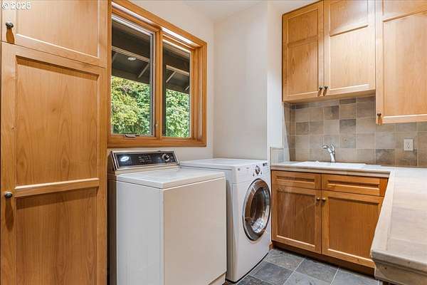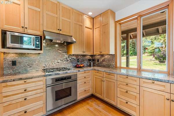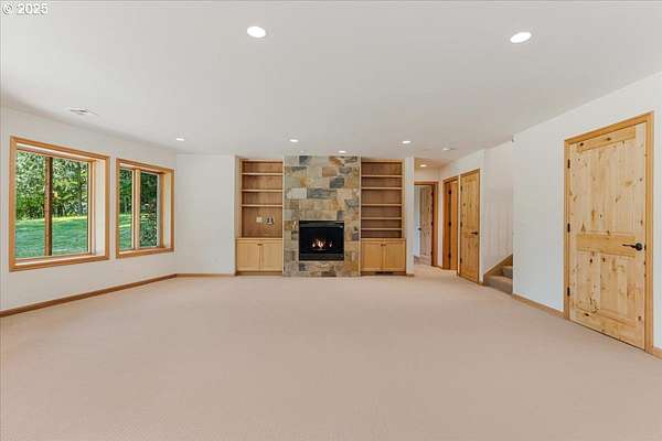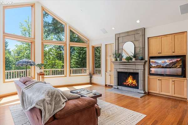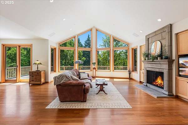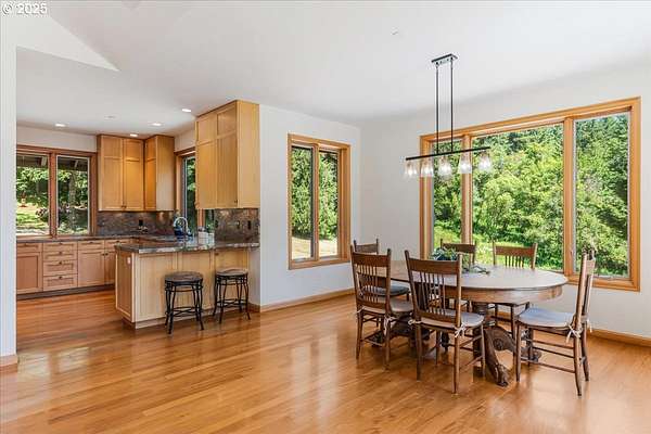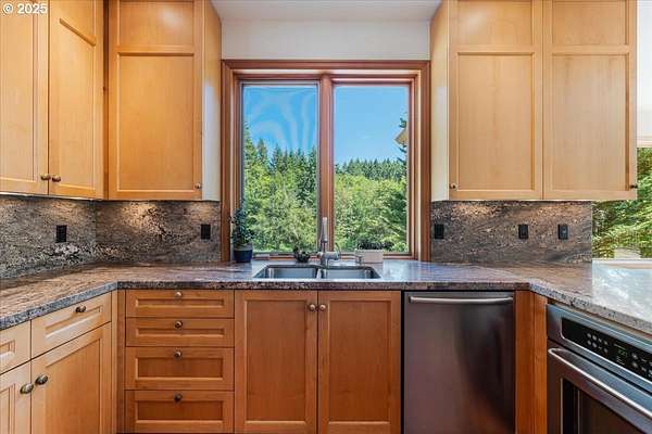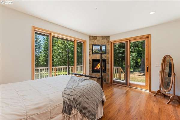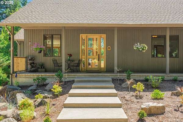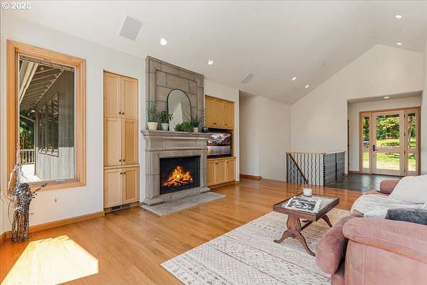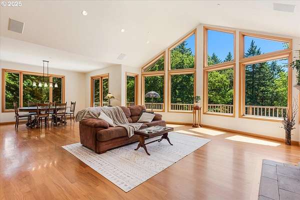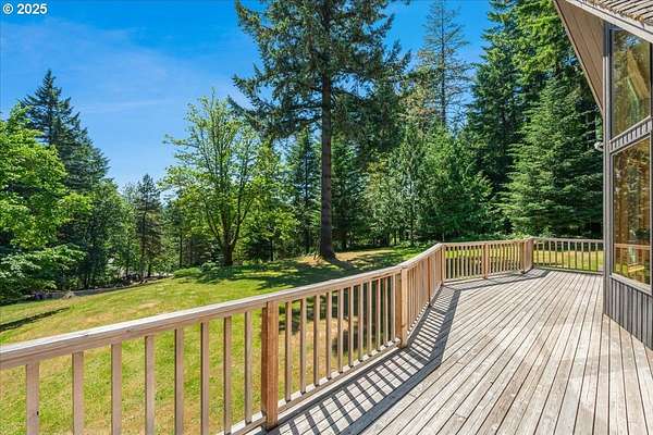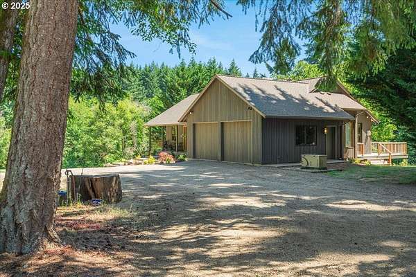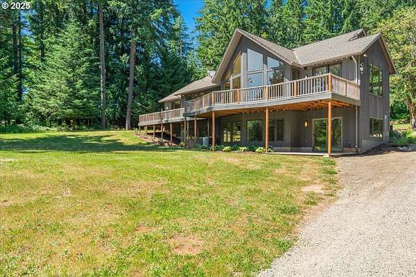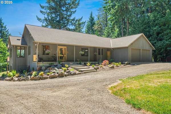 Surrounded by mature trees and lush landscaping, this custom-built gated estate offers a rare blend of luxury, privacy, and functionality just minutes from the Banks-Vernonia State Trail. Set on 9.61 peaceful acres, this one-of-a-kind property features a meandering creek, back up generator, a 36x48 workshop with loft storage & 200 amp breaker, a separate 20x48 covered storage building, outdoor fire pit area, interior fire sprinkler system, remote controlled security gate, and a striking cedar deck that invites you to relax and take in the scenic surroundings. Inside, this home is adorned with upgrades including over 14' high vaulted ceilings in the great room and 9' ceilings throughout that invite an abundance of natural light, three bedrooms on the main floor, Pella wood clad casement windows, rich Peroba South American hardwood floors, solid core Knotty Alder doors, three gas fireplaces, wine cellar and custom clear alder cabinetry throughout. The chef's kitchen features Crema Bordeaux granite, a DCS gas cooktop with Dacor wall oven, a second Frigidaire Speed Bake oven, full-height alder cabinets with soft-close drawers, and clever corner storage. Retreat to the luxurious primary suite with fireplace, walk-in closet, sliding door to the outside, heated bathroom floors, Bain Ultra air tub, and a spa-style shower with dual Grohe heads, body sprays, and bench. All 3 full baths feature natural stone finishes and full-height mirrors. The main floor 3rd bedroom is oversize & could double as an office or potential to enlarge the primary suite. The daylight lower level features a spacious family room, large bedroom, and full bath-with views of the picturesque landscape-ideal for multigenerational living or a private guest suite. This thoughtfully designed estate is a serene and practical retreat that checks every box for comfort, style, and country living at its finest.