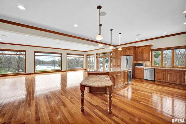 Once in a lifetime opportunity to own the "Estate on Spring Creek Hill!" This unparalleled property offers an incredible package to the right buyer - 13.75 acres, 9,700 square foot home, in-ground pool with pool house, and 2 massive Morton buildings. The all-brick home essentially lives like two complete houses put together, and is perfectly set up for multi-generational living with two of everything-- kitchens, primary suites, living and entertaining spaces, guest areas, laundry areas, and more. The full bathrooms in the original portion have been recently updated, along with fresh paint and bedroom flooring. The room sizes in the addition are superb to accommodate family and guests with ease and room to spare. The primary suite alone is over 1,500 square feet! The basement is mostly finished with one of the laundry areas, two rec rooms, walk-in cooler, wine room, and walk-in safe. 4 car attached garage with additional storage and attached covered car port. The possibilities for the property widen with the two massive Morton buildings-- Building 1 is 90x45 and split into 2 sections with heat, insulation, 220 power, floor drains, 14-foot doors, and loft area; while Building 2 is 60x120 with gravel floor, 220 power, and 4 access doors. Building 2 would make a great horse barn/indoor arena. In-ground pool has pool house with full bathroom and pump room. Owned solar panels on Building 2 roof greatly reduce energy costs. Washington schools! Schedule your private showing today!