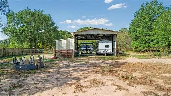 Welcome to your country retreat in Bokchito, Oklahoma, a small- town feel but minutes away from Durant, OK. This spacious Ranch Home sits on 5 beautiful acres in the highly sought-after Rock Creek School District, offering the perfect blend of rural charm and modern convenience. Inside, you'll find 4 bedrooms and 2 full bathrooms, including a private master suite with a walk-in shower and dual sinks. The inviting kitchen features a cozy breakfast nook with serene countryside views-perfect for morning coffee or family meals. Outside, the property is set up for both work and play. There are three 10x10 livestock stalls and a fenced-in area for horses or other livestock, providing plenty of room for animals. A 20x30 shop, detached 2-car garage, and 24x35 RV/boat/trailer storage offer excellent space for equipment, hobbies, and projects. For relaxation and entertainment, you'll love the outdoor kitchen/fire pit area, ideal for gatherings with family and friends. Fruit trees, a concrete basketball pad, and a storm cellar add both charm and practicality. The property also includes guest quarters, giving flexibility for guests or extended family. The space is fully plumbed and connected to the septic system (though a toilet has not yet been installed.) Enjoy the best of both worlds-peaceful small-town living with easy access to major amenities. You're just 12 minutes from Durant, where you'll find shopping, dining, and entertainment. The Choctaw Casino & Resort is approximately 15 minutes away, offering fine dining, concerts, and family fun. Oklahoma City is about 2 hours north, and the Dallas-Fort Worth Metroplex is roughly 1 hour and 45 minutes south, making this location perfect for commuters or weekend travelers. This property truly has it all-space, functionality, and a peaceful country feel-all within minutes of modern conveniences. Whether you're looking for a working homestead, a family retreat, or a forever home, this Rock Creek gem is ready to welcome you.