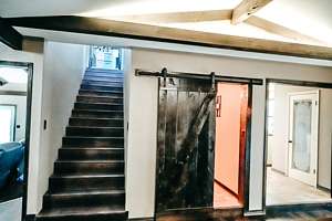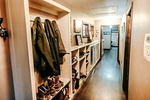 French doors leading outside. There is a large closet underneath the stairwell. This room has a cell phone booster.