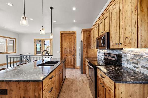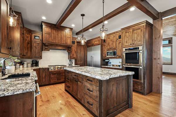 Beautiful Custom Mountain Home on 5.65-acre wooded lot. Property can be extended by acquiring the additional 5.26-acre lot that is also available. Breathtaking panoramic views that you won't find anywhere else. This 5 bedroom 5 bath home includes a separate garage with a 1-bedroom apartment up above. The main house has a wraparound deck and private deck off the Master bedroom so you can enjoy the peaceful setting. The home includes an amazing office with built in desks and cabinetry. The kitchen is equipped with a gas stovetop, double ovens and large pantry. The great room has a beautiful rock fireplace and Hardwood flooring. This home has 4 fireplaces in total. There is so much custom cabinetry and natural stone throughout the entire home. Outside you have a professionally landscaped yard with a large wood fire pit. There is also a gas fire pit on the front patio. You have 3 world-class ski resorts within 5-22 miles of the home. Miles and miles of mountain bike and hiking trails right from the house. This is such a unique property you need to come see it in person! (The ADU / mother-in-law apartment over the detached garage has a full kitchen, family room, bedroom, and full bathroom. That sq footage is listed in the "3rd floor" section).
