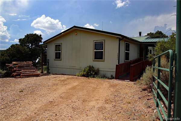 In the Wild Horse Mesa Canyon, only a small handful of homes exist, and all properties here are larger 35+ acres. At this home, you can sit on your 8' x 40' back porch like you never before dreamed to do, overlooking the Sangre de Cristo Mountains and the vast valley below as you sip your beverage and just breathe. The windows and doors in this home are set across from one another to allow the cooler summer breezes to waft through the house for that peaceful mountain living feel. This is a one owner home, utilizing off-grid features such as a solar energy system, septic system and buried cistern. A 12KW generator will ensure the batteries can still receive a charge when the sun has a less than accommodating. An RV pad exists at the NE edge of the property with its own drive way. Winter nights can get chilly, in addition to the forced air furnace, the wood burning stove in the living room can generate enough heat to keep you toasty and a Rinnai heater in the primary bathroom can utilized there as well. This home shares the acreage with two other homes as tenants in common, meaning your property tax on the acreage is only 33% of the norm! With this home being on the eastern edge of this large parcel, each home claims 12.5 acres. See the plat image in the photos. Though it is rare to actually see them, larger animals in the area include mule deer, elk and black bear.