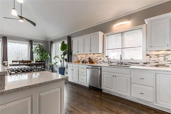 - Cooktop, Dishwasher, Disposal, Down Draft, Gas Range, Refrigerator, Stainless Steel Appliance(s), Water Softener