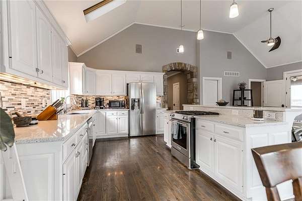 - Custom Cabinets, Hot Tub, Kitchen Island, Painted Cabinets, Vaulted Ceiling(s), Walk-In Closet(s), Wet Bar