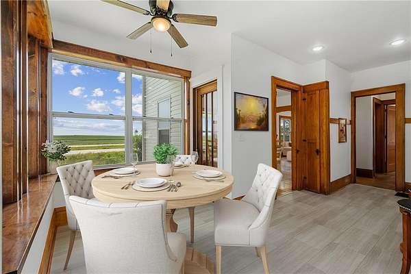 Experience the perfect combination of modern updates and timeless country character with this spacious 5-bedroom, 2 full bath, 2 half bath home offering 3,348 sq. ft. of living space on 10.78 acres in Van Horne, Iowa (Benton County). The property may be parceled, and sellers are open to offers that reflect this option. This 2+ story craftsman-style farmhouse has been thoughtfully updated to preserve its historic charm while incorporating modern conveniences. Recent exterior improvements include a new roof, siding, windows, and gutters. Inside, you'll find beautifully refinished flooring, fresh paint, updated countertops, new cabinets, modern lighting, and a new sink with a built-in glass wash station. A bright breakfast nook offers a welcoming spot to enjoy views of the property and abundant natural light. Utility upgrades include a tankless water heater, new water softener, updated PEX piping, a new well pump, and a new well tank--ensuring efficiency and reliability. The detached 3-stall garage has been refreshed with a new roof, siding, garage doors, and a concrete floor, providing ample space for vehicles and storage. The property also features a 66x100 arena, which can serve equestrian purposes or be adapted for large-scale storage, equipment, or business use. Located directly on Highway 30, this property offers excellent visibility and accessibility, creating unique opportunities for residential or Homesteading, or multiple home based business purposes. 6' fencing and entry gate along the highway offers additional security as well. Contact your real estate professional today to schedule a showing.