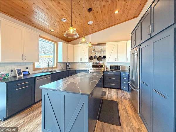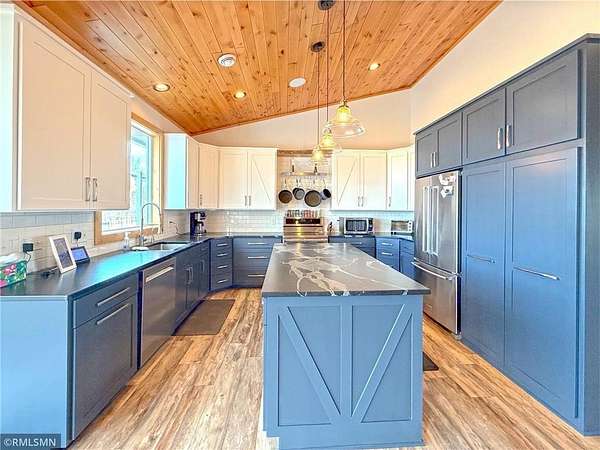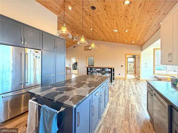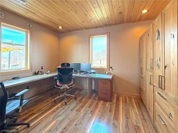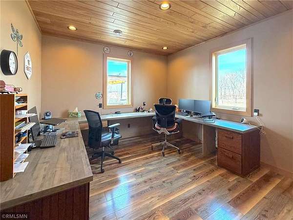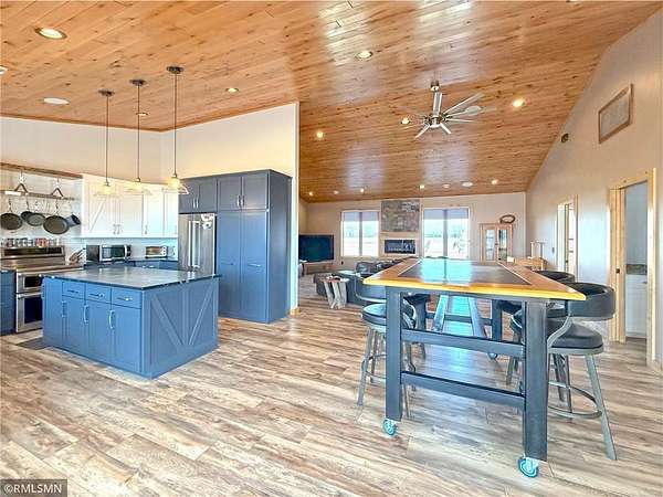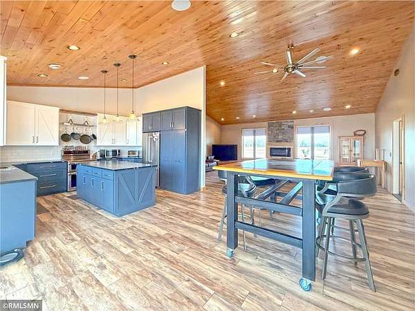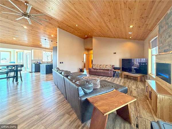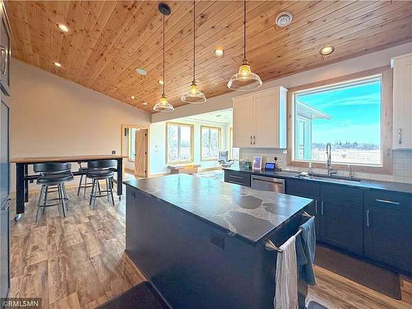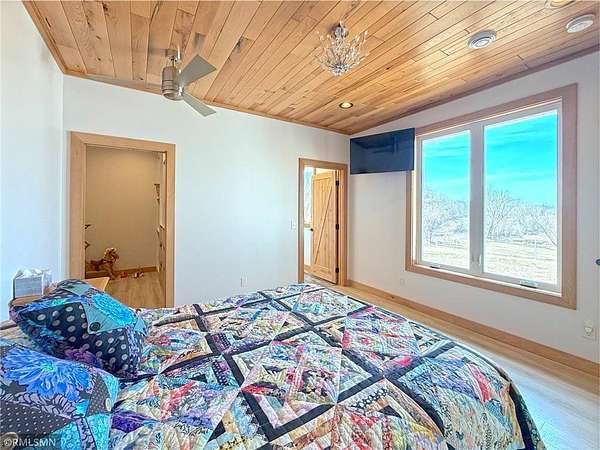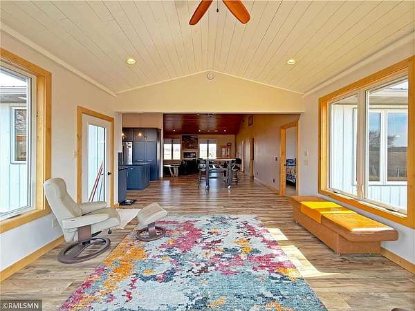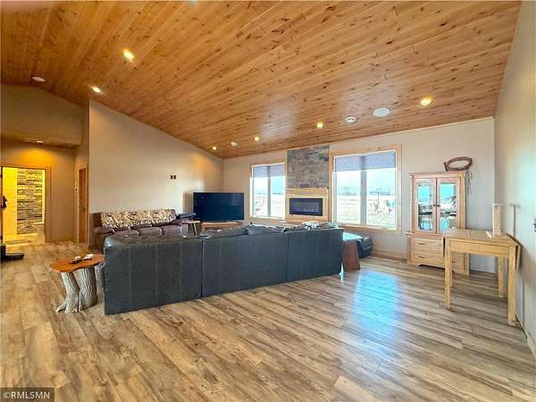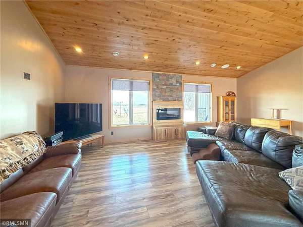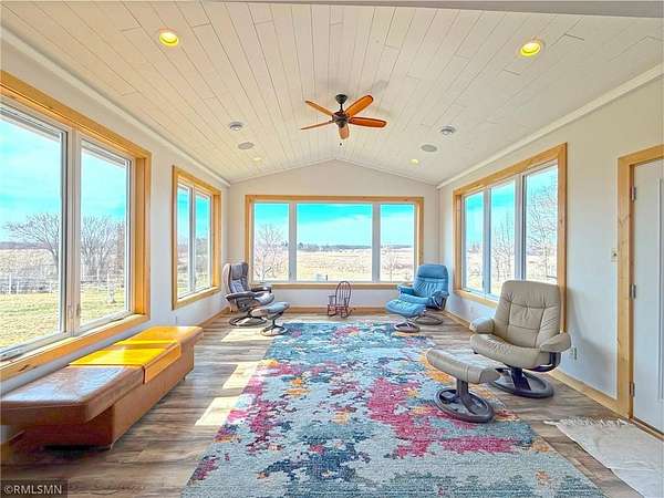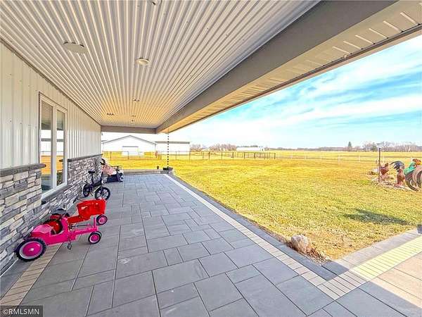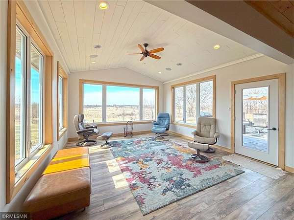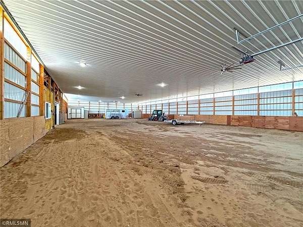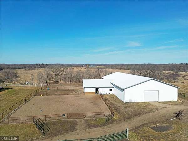 Built in 2020, this impressive shouse-style home offers 3 bedrooms, 3 bathrooms, and 2,050 finished square feet set on 64.77 scenic acres. In-floor hot water heat warms both the home and attached triple garage, delivering efficient year-round comfort. Spend your days relaxing in the sun porch that opens to a side patio with pergola, or gather in the inviting living room highlighted by an electric fireplace. The stunning kitchen is beautifully finished and accented by a striking red oak ceiling that continues throughout the home, creating warmth and character. Natural sunlight fills every space, and the home offers two well-appointed bedrooms (3rd bedroom being used as an office) and bathrooms designed with comfort in mind. The attached triple garage also includes a convenient half bath. The centerpiece of the property is the extraordinary 60x120 pole shed featuring an indoor riding arena, office space, half bathroom, and direct access to three paddocks. This exceptional setup makes the property a true horse lover’s retreat with space, functionality, and privacy in every direction. Will stay with the property: The custom made living room table (with matching leathered granite countertop) along with 4 chairs. Reel hose mounted in garage. Tan shed in yard by garage.