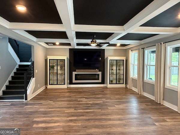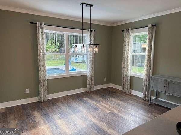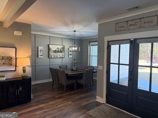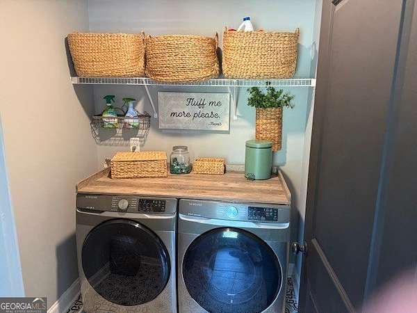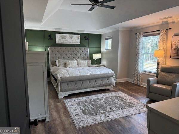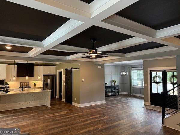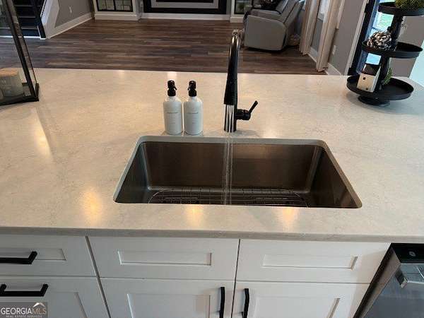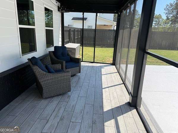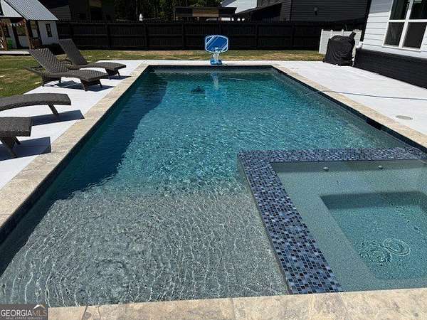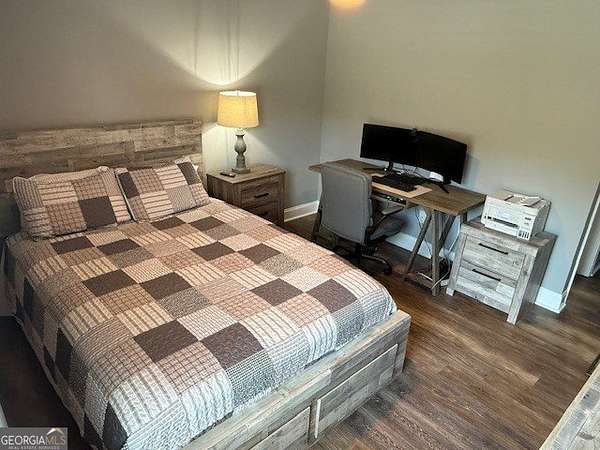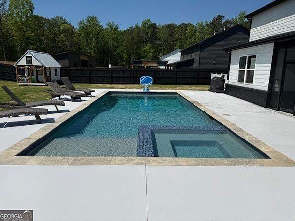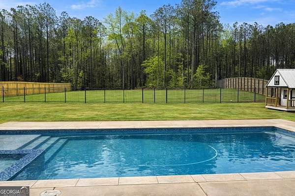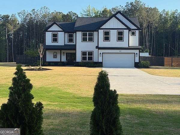 Welcome home to this one-of-a-kind modern farmhouse perfectly situated on 1.52 private acres that backs up into the woods-offering peace, privacy, and high-end style at every turn. Close to the Gwinnett Exchange and convenient to the Mall of Georgia. Step inside to discover farmhouse charm with designer finishes throughout, including beautiful shiplap and custom design walls. The heart of the home is the gorgeous chef's kitchen, featuring an abundance of cabinetry, high-end stainless-steel appliances, and a large island perfect for entertaining. The expansive family room impresses with a coffered ceiling, cozy fireplace, and open flow to the spacious dining room-ideal for gatherings big and small. Your private retreat awaits in the huge master suite, complete with two walk-in closets and a luxurious master bath showcasing double vanities, a custom-tiled shower, and a soaking tub for ultimate relaxation. A main-level in-law suite adds versatility with its own full bath, perfect for guests or multi-generational living. In-law suite with private bath on main level. Loft/TV room upstairs. Outside, escape to your personal oasis-an inground heated saltwater pool with spa, surrounded by extensive decking and a screened porch that make indoor-outdoor living a dream. There's also a fun children's playhouse or extra storage with two levels that matches the main home. Gorgeous lot goes into the wooded area! Entire lot has been sodded. With five bedrooms, four full baths, durable 22-mil LVP flooring throughout added 2024, and tile in all bathrooms, this home combines timeless farmhouse aesthetics with modern functionality. It also has a perfectly flat lot with an option of adding a guest house to the property. Owner-Agent! Security System monitored through ADT.