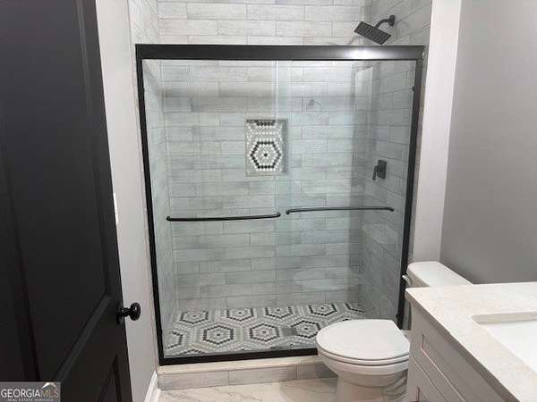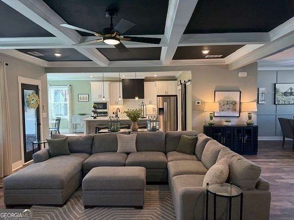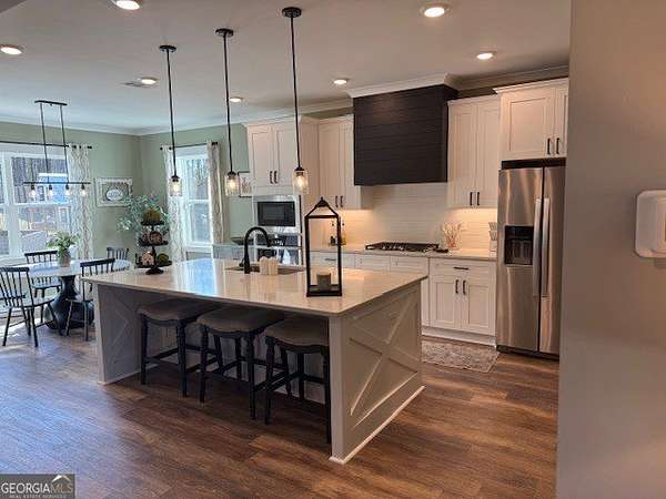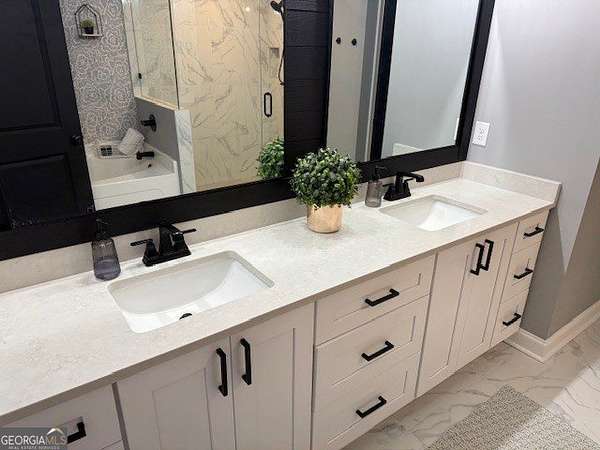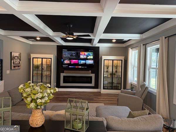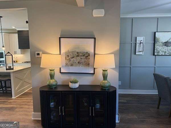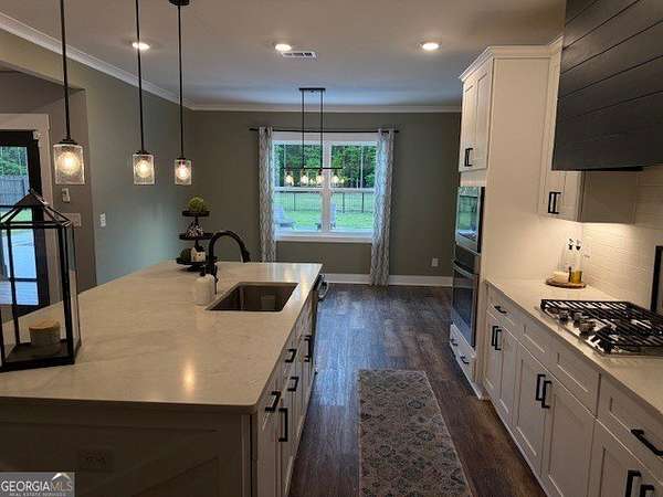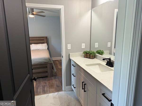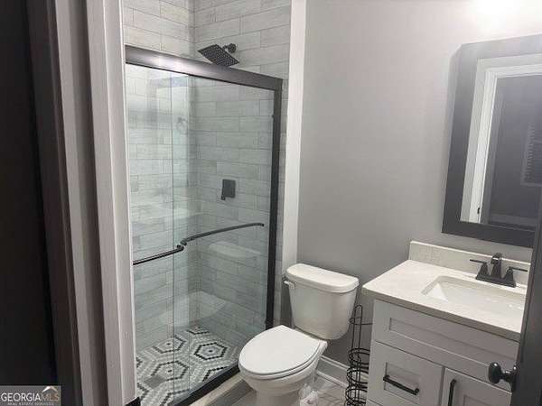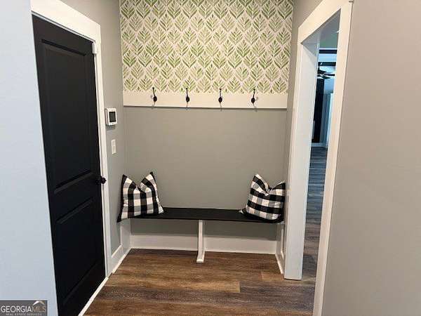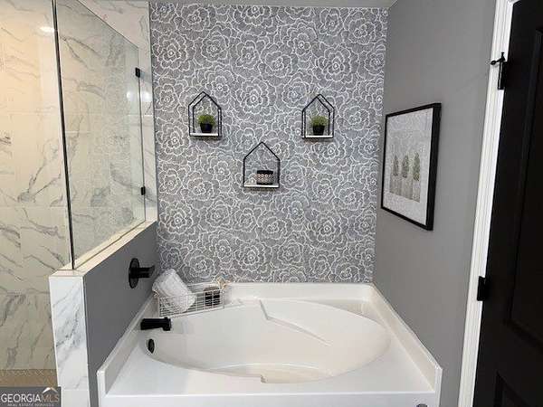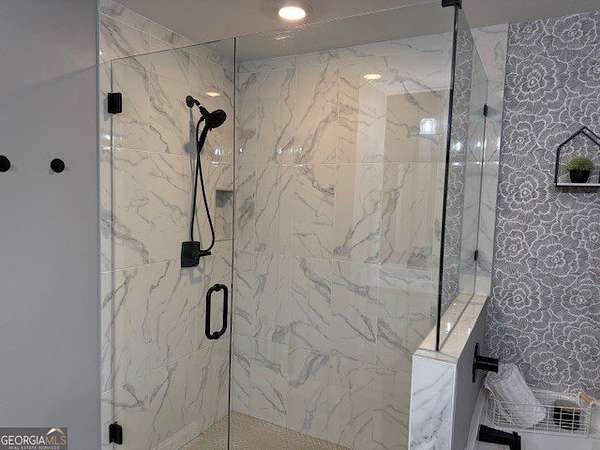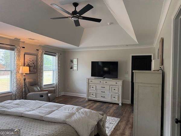 Welcome home to this one-of-a-kind modern farmhouse perfectly situated on 1.52 private acres that backs up into the woods-offering peace, privacy, and high-end style at every turn. Close to the Gwinnett Exchange and convenient to the Mall of Georgia. Step inside to discover farmhouse charm with designer finishes throughout, including beautiful shiplap and custom design walls. The heart of the home is the gorgeous chef's kitchen, featuring an abundance of cabinetry, high-end stainless-steel appliances, and a large island perfect for entertaining. The expansive family room impresses with a coffered ceiling, cozy fireplace, and open flow to the spacious dining room-ideal for gatherings big and small. Your private retreat awaits in the huge master suite, complete with two walk-in closets and a luxurious master bath showcasing double vanities, a custom-tiled shower, and a soaking tub for ultimate relaxation. A main-level in-law suite adds versatility with its own full bath, perfect for guests or multi-generational living. In-law suite with private bath on main level. Loft/TV room upstairs. Outside, escape to your personal oasis-an inground heated saltwater pool with spa, surrounded by extensive decking and a screened porch that make indoor-outdoor living a dream. There's also a fun children's playhouse or extra storage with two levels that matches the main home. Gorgeous lot goes into the wooded area! Entire lot has been sodded. With five bedrooms, four full baths, durable 22-mil LVP flooring throughout added 2024, and tile in all bathrooms, this home combines timeless farmhouse aesthetics with modern functionality. It also has a perfectly flat lot with an option of adding a guest house to the property. Owner-Agent! Security System monitored through ADT.