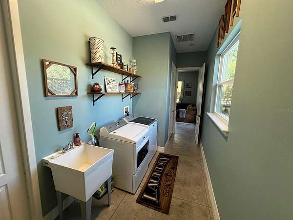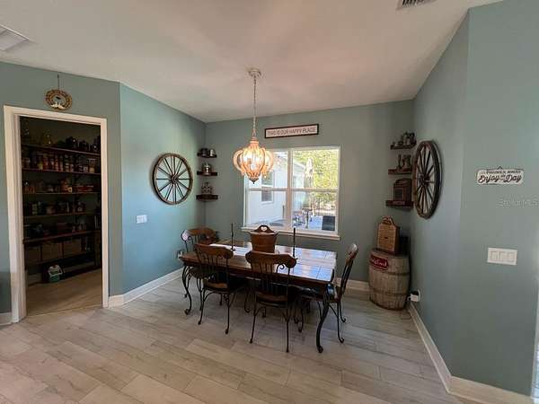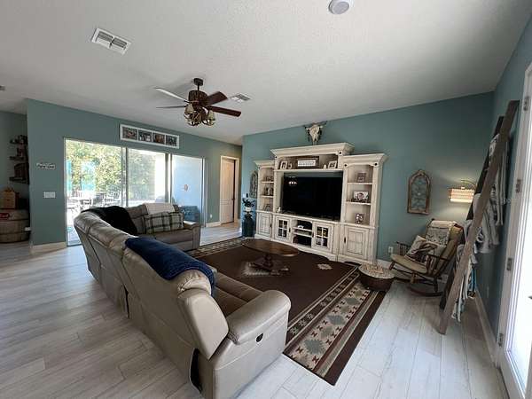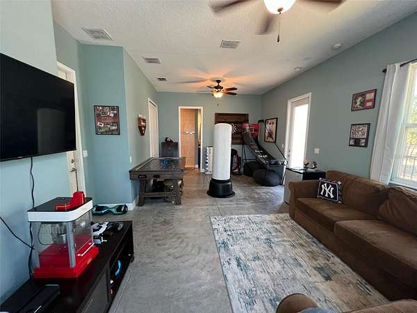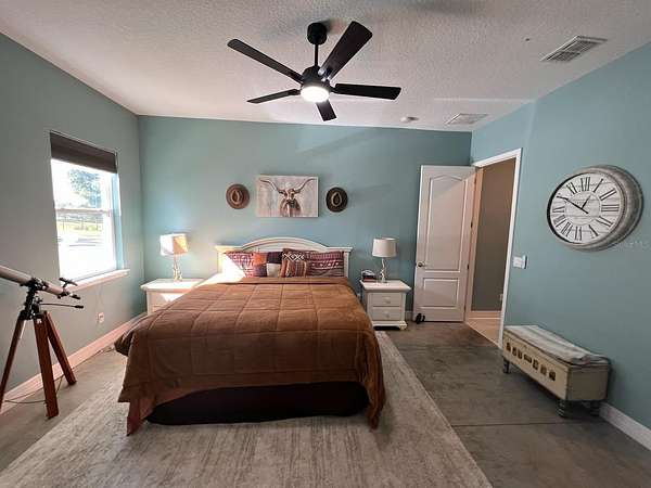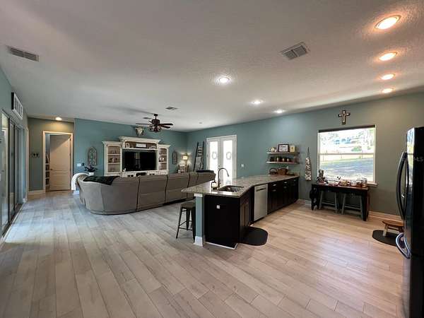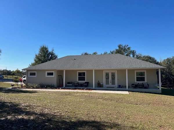 Beautiful 2500 ft2, four bedroom three bath pool home on nearly two fenced acres. This home is conveniently located 7 minutes from the turnpike entrance and 20 minutes from Leesburg and Clermont. The home features a three car sidecar garage, paved driveway. large front porch, fire pit for family gatherings, nearly new in ground heated pool with paver decking and fully fenced perimeter with separate fenced in areas for the garden and animals. Home was built in 2018 with energy efficient features like double pane windows and spray foam insulation in the attic. It features a split bedroom layout with the fourth bedroom serving as the perfect mother-in-law suite with its own outside entrance and full bathroom. Upgrades include 10 ft high ceilings, 8 ft doors, 42-in wood cabinets in the kitchen, granite counter tops throughout, stainless steel appliances, 10 ft. slider leading to the pool deck and central vacuum. The pool was recently upgraded to a salt water system. The master bath has dual sink vanity, separate tub and large walk-in shower as well as a walk in closet. Newly paved private access driveway. This is a must-see home.