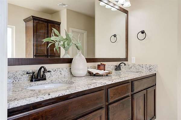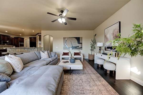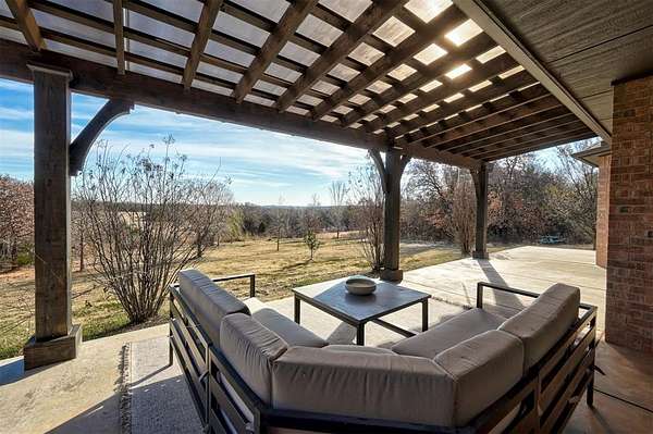 Welcome to your own private retreat nestled on nearly 4 wooded acres inside a peaceful, gated community. This beautifully crafted home offers 5 bedrooms, 3.5 baths, and a spacious upstairs bonus room, providing the perfect blend of space, comfort, and seclusion. Recently appraised at $670,000, buyers will enjoy $40,000 in instant equity. Step inside to a warm, inviting interior filled with natural light and elegant architectural details. The entry opens to a spacious living area framed by arched openings, rich wood floors, and a beautifully crafted staircase that sets the tone for the rest of the home. The heart of the home is the open kitchen, dining, and living area-an inviting space designed for effortless gathering. The kitchen features stone accents, granite countertops, double ovens, and an extended eat-in bar, all flowing seamlessly into the dining area and the cozy, stone-accented living room. Expansive windows frame peaceful views of the surrounding wooded acreage from every angle. The main-level primary suite offers a true retreat with a generous bay-window sitting area and an ensuite featuring a double sink vanity, a large soaking tub, and a spacious walk-in closet. Secondary bedrooms are thoughtfully designed, and the upstairs bonus room provides flexible space for a playroom, media room, or office. Step outside to your own outdoor oasis: a covered patio with a beautiful beam-detailed pergola, perfect for entertaining or relaxing year-round while enjoying the natural privacy around you. Don't miss this incredible opportunity to own a serene, private retreat with unmatched value and acreage.