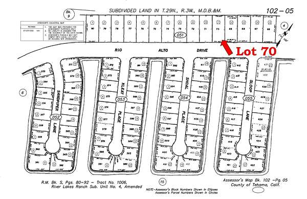 Highway 5 North from Red Bluff or South from Redding/Anderson, Bowman Road exit, East on Bowman, Right on Lake California Dr. travel thru then down to the Lake, left on Rio Alto, property on your left.