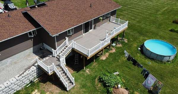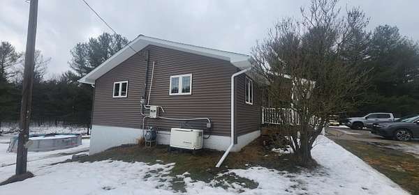 Set on 10.5 private acres, this beautifully maintained three-bedroom home offers comfort, space, and exceptional outdoor living. The residence features two full baths and one three-quarter bath, spacious rooms, and a generous dining area highlighted by Blue Haze knotty pine walls. An eight-foot sliding glass door fills the space with natural light and opens to a stunning full-length deck idea for relaxing while enjoying year-round views of wildlife, including deer, turkey, squirrels, and elk, along with mature trees in every season. The home includes a full walk-out basement with high ceilings, natural gas heating, central air conditioning, and a 17 kW whole-house on-demand generator for peace of mind. The attached two-car garage is spray-foam insulated and equipped with a pellet stove.