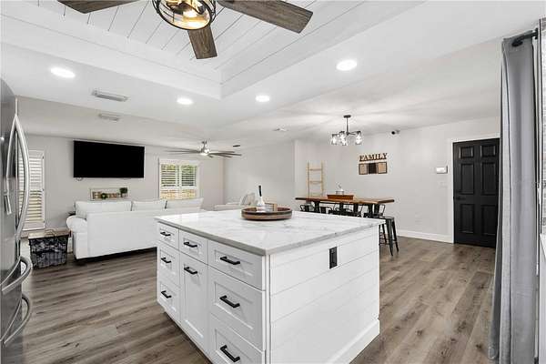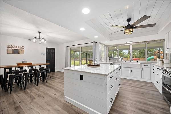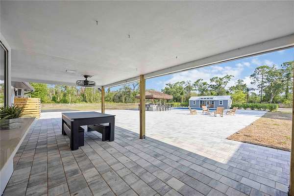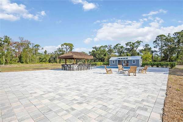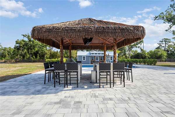Welcome to your slice of paradise located in the heart of beautiful Sarasota, Florida. Upon arriving to this exquisite completely remodeled fully fenced and oversized asphalted driveway property a brand new electric gate welcomes you. This property is centrally located on over 2 acres offering a blend of contemporary luxury and timeless elegance, perfectly situated in the sought-after neighborhood, Desoto Acres. Step inside this meticulously designed residence and be greeted by an abundance of natural light dancing through the spacious rooms. With 4 bedrooms plus bonus room and 2 bathrooms, this home provides ample space for relaxation and entertainment. The open-concept layout seamlessly connects the living, dining, and kitchen areas, creating an ideal space for hosting gatherings or simply unwinding after a long day. The gourmet kitchen is a culinary enthusiast's dream, featuring state-of-the-art appliances, sleek countertops, and custom cabinetry. Whether you're hosting a lavish dinner party or enjoying a casual meal with loved ones, this space is sure to inspire your inner chef. Unwind in the opulent master suite, complete with a lavish ensuite bathroom, featuring a double rainfall shower head walk in shower accompanied with a center drain freestanding tub with 45- gallons of water capacity equipped with 8 Water jets and 0.75HP water pump provide a luxurious experience. Each additional bedroom boasts its own unique charm, providing comfort and privacy for family and guests alike. Step outside of the sliding glass doors to your very own oasis, soak up the Florida sunshine or lounge by the sparkling pool, or grab a cold one and sit back and relax on the newly paved outdoor arena. Whether you love to host an outdoor gathering or a relaxing dinner outside, the Paradise Grills Abaco 18' x 16' is a premium outdoor kitchen designed for those seeking a luxurious and functional backyard entertainment space. Equipped with the GS-32 Premium Hybrid Grill, this unit supports multiple cooking methods providing versatility for various culinary preferences. The kitchen includes a stainless steel refrigerator, storage doors, outlets, and an oversized bar rail footrest, all crafted from 304-grade stainless steel for durability.Integrated with an outdoor marine stereo system and speakers, the kitchen ensures an immersive audio experience. Additionally, it boasts smart app-controlled LED lighting, allowing customization of ambiance. The Avellaero stone countertops are digitally scanned from rare Italian stones and reinforced with NASA's honeycomb technology, ensuring longevity and resistance to the elements. Featuring a welded tubular aluminum frame, the structure is designed for strength and portability. The plug-n-play electrical system simplifies installation, and the oversized footrest enhances comfort during use. Have horses, pigs, or chickens? There is plenty of room for them as this property sits on over 2.5 acres with 2 barn stalls, full tack and feed room. Conveniently located just minutes from pristine beaches, world class dining, Sarasota/Bradenton airport and shopping destinations, this home offers the perfect blend of luxury and convenience. Whether you're seeking a peaceful retreat or an entertainer's paradise, this property is sure to exceed your expectations. Don't miss your opportunity to experience resort-style living in Sarasota's most coveted community.