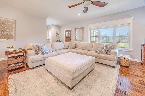 This modern, high-quality 5-bedroom, 3-bath home, built in 2016, sits on 5 acres and features premium finishes throughout, including stainless steel and natural-gas appliances. The home is equipped with Anderson windows and patio doors, a natural-gas stove, fireplace logs, and a 50-gallon natural-gas water heater. A poured-concrete patio includes a plumbed-in natural-gas grill for outdoor cooking. The property offers exceptional structural integrity with 12-inch block walls extending to the top of the basement, every other course filled with concrete, and a French drain system on grade that leads to a drainage ditch. Additional amenities include a storm shelter, a 1,000-gallon septic tank with 1,000 feet of field line, and a Generac 16-kw whole-house natural-gas generator. Storage and parking are abundant with a 26' x 28' attached garage upstairs, a garage in the basement and a 24' x 36' pole barn.
