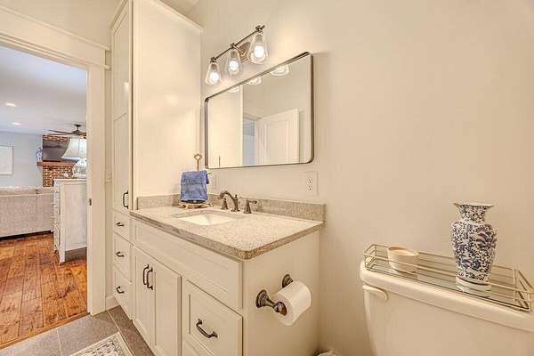 - Bathroom Mirror(s), Built-In Features, Ceiling Fan(s), Eat-In Kitchen, Granite Counters, High Ceilings, High Speed Internet, Kitchen Island, Open Floorplan, Primary Downstairs, Walk-In Closet(s)