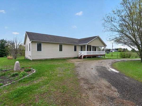 Rare country offering in the Grass Lake School District with EZ access to I-94! This well-built vinyl sided ranch offers 1792 SF of comfortable living space on 6+ scenic acres. Home features 3 BR, 2 full BA, quality 6'' wall & truss construction, & numerous updates throughout. Spacious great rm welcomes you with vaulted ceilings & abundant natural light. Open kitchen is designed for everyday living & entertaining with granite countertops, newer high-end appls, ample cabinetry, pantry/storage, & generous workspace. Primary suite offers privacy & convenience, while 2 additional BR's provide flexibility for guests, office, or hobbies. Pella windows w/ integrated blinds add style & efficiency. Major mechanical updates include HE furnace new in 2025 & C/A in 2024. Full walkout bsmt expands possibilities with a large wood shop, storage, & future finished space potential. Attc 2-car garage adds convenience. Enjoy room to roam, garden, hunt, or simply relax in a peaceful setting.