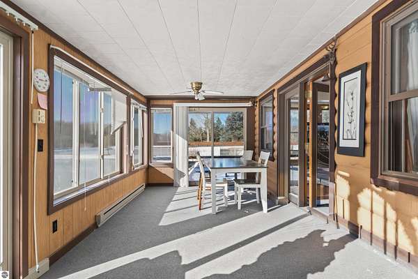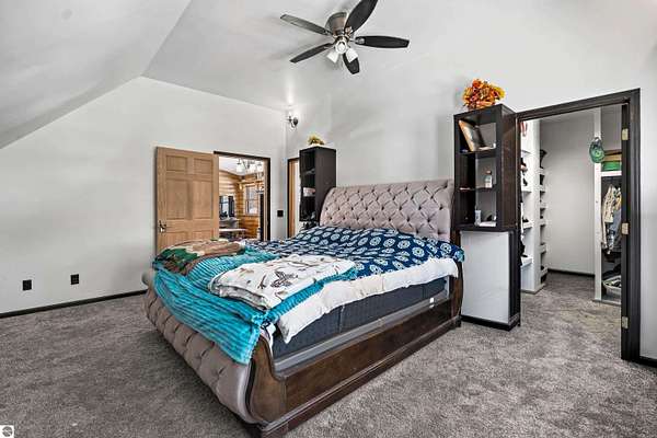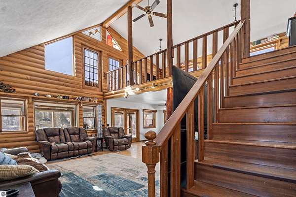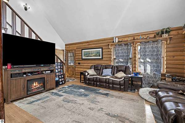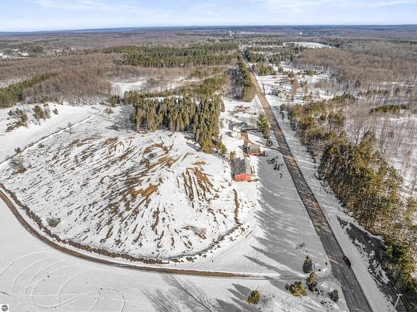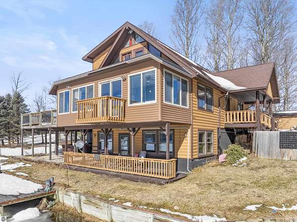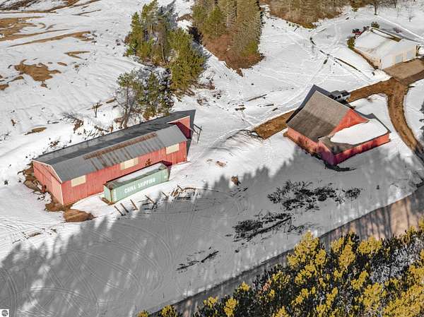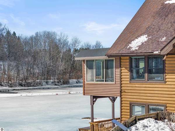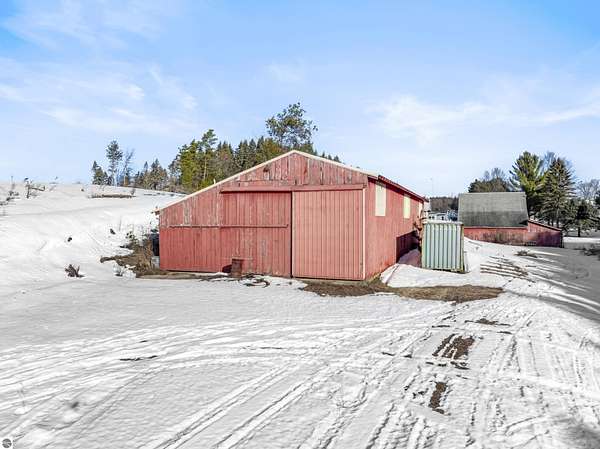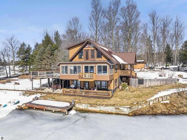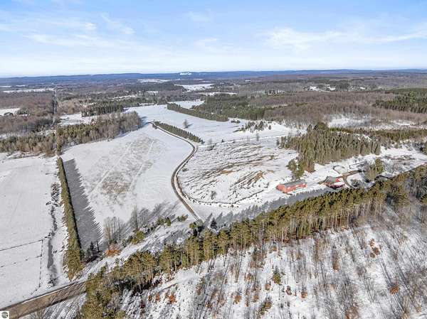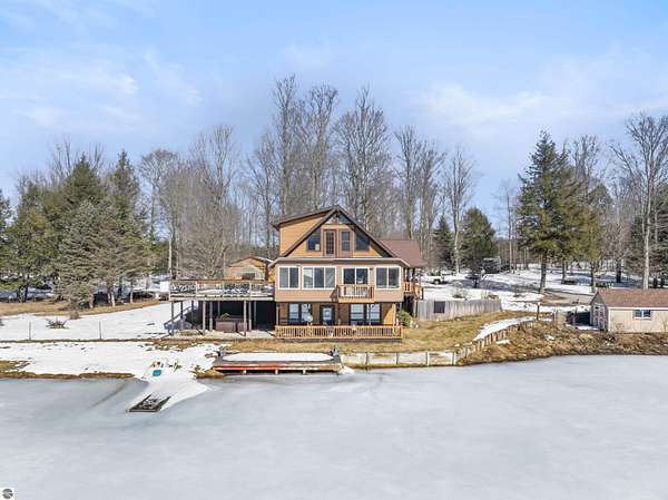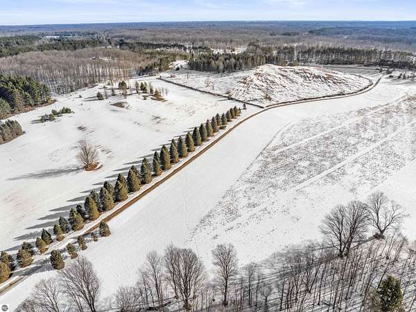 Natural beauty surrounds this 100+/- acre private estate in Northern Lower Michigan. A long winding drive leads to a custom-built, waterfront cottage-style home perfectly set in its peaceful country setting. Move-in ready, this property is ideal as a private retreat, lodge, or homestead. Thoughtfully designed for deer management and migratory waterfowl, the land includes approximately 60 acres in planned agricultural production. The cedar log-sided home is filled with natural light and offers stunning views from every level. Plenty of room for horses, cattle, or other livestock, plus a greenhouse and large root cellar to support your harvest. Two 24’x30’ insulated garages with heat, power, and water provide ample space for equipment and toys. A waterside cabin with power awaits your finishing touches. Woods, fields, and rolling terrain offer exceptional hunting and recreation, along with a stocked private lake for fishing and paddling—your up-north escape awaits.